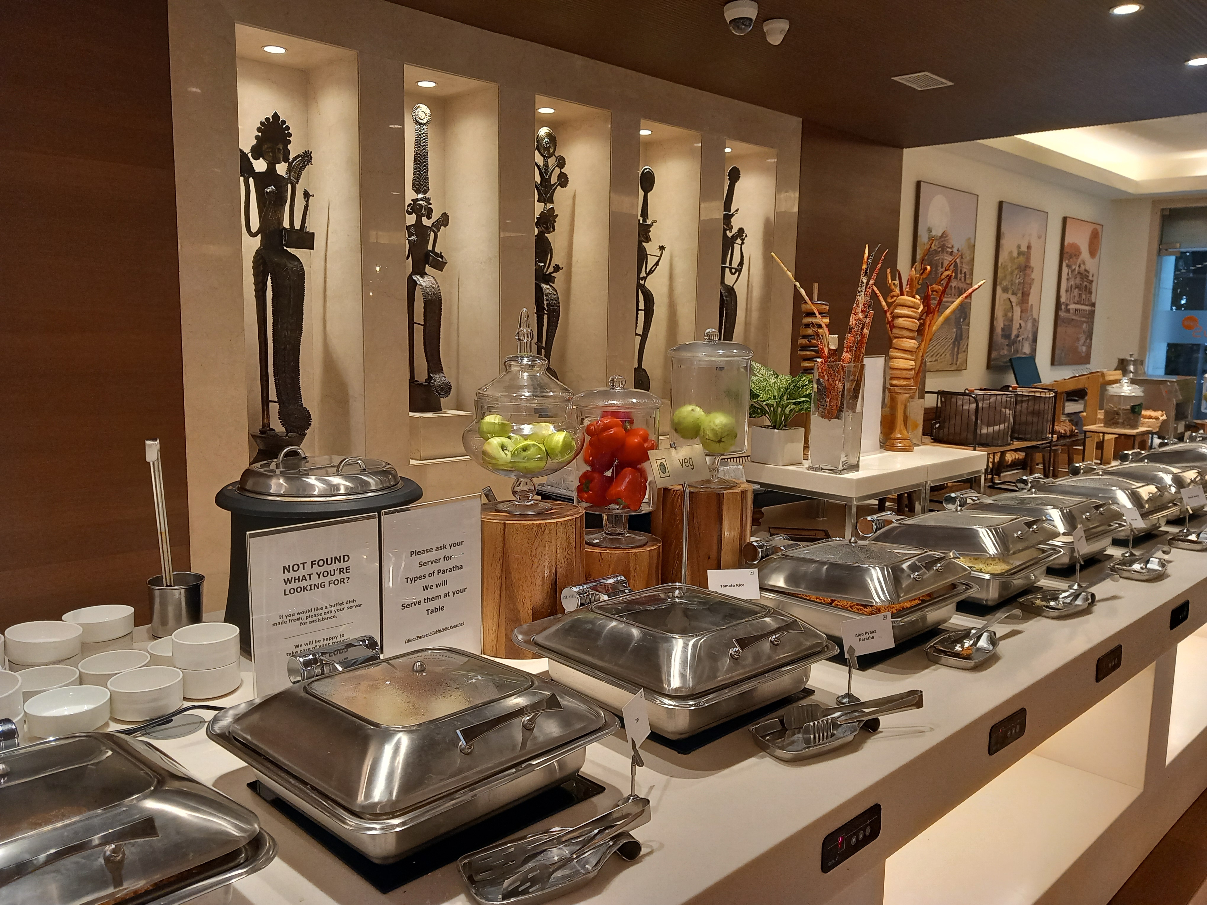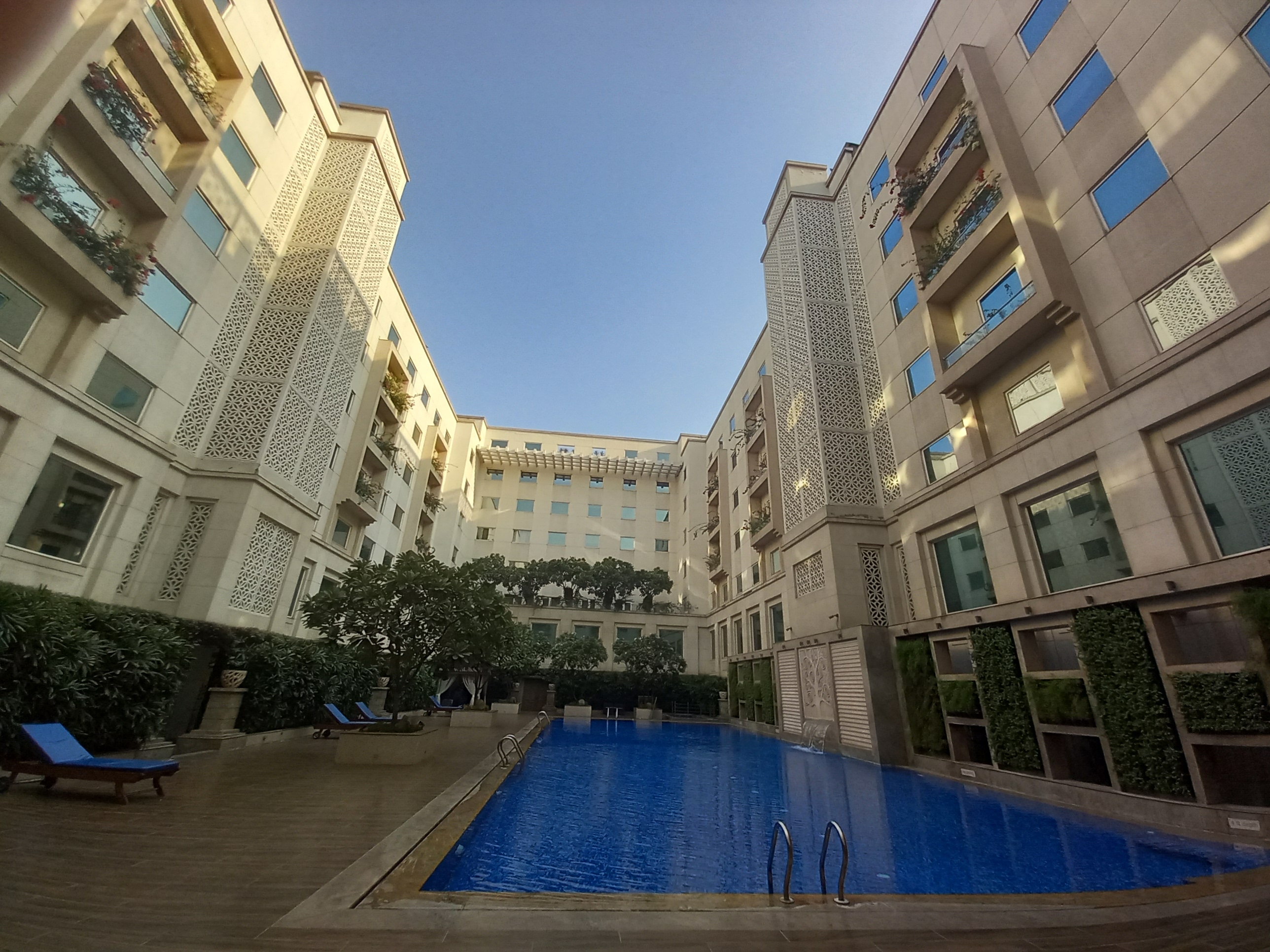 Notre dernier petit-déjeuner à Delhi est à la hauteur de nos espérances : du choix, du salé, du sucré, et surtout du local. Nous prenons des forces pour la journée de trajet qui s’annonce longue et froide (sans parler du décalage horaire prévu dans la nuit suivante en Europe qui va accentuer le contraste) et prenons le temps d’aller encore découvrir notre lieu d’hébergement avant de nous diriger vers l’aéroport. Nous ne sommes absolument pas déçus de ce dernier hôtel, la preuve en image !
