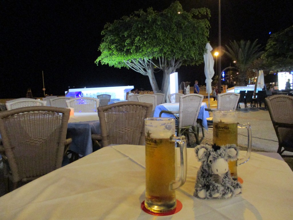Et comment ne pas débuter un séjour sur une île sans un bon repas de poissons et fruits de mer ? Nous sélectionnons le Tropic Queen situé directement sur la plage de Las Vistas (fermé depuis notre séjour) afin de manger face à l’océan, de nuit, en terrasse. Un vrai fantasme au vu du climat que nous avions quitté le matin-même ! Et même Célestin profite du paysage…