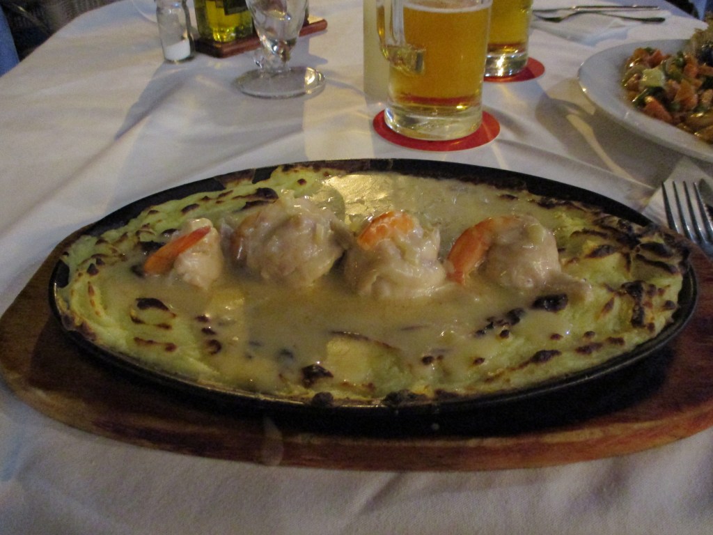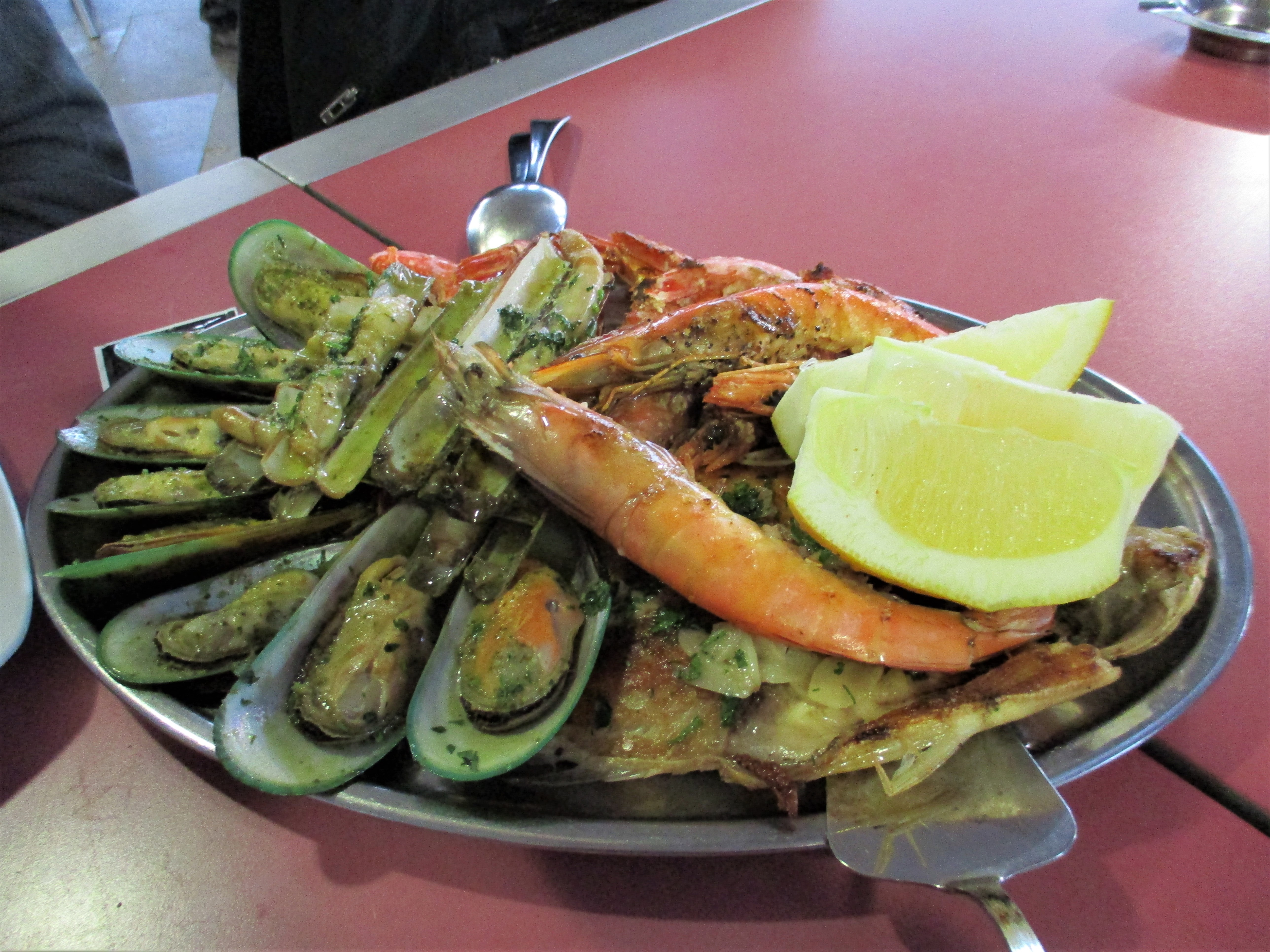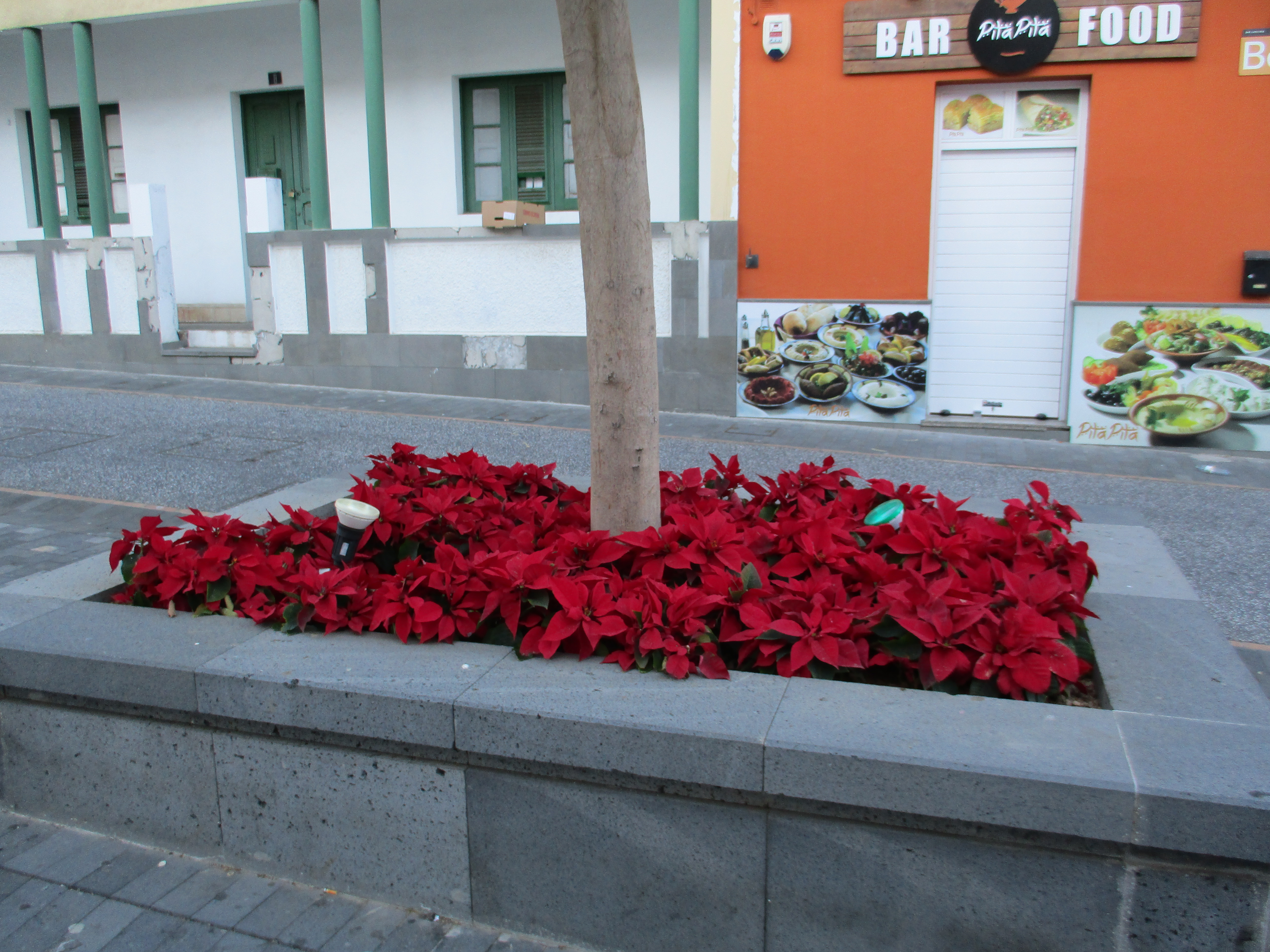 Nous déambulons ensuite dans les rues de la ville : nous admirons une crèche en extérieur, faisons une étape à la « Casa de las especias » pour acheter du safran en gros (qui s’avère d’ailleurs être d’une qualité incroyable), restons bouche bée devant des poinsettia plantés dans des bacs à fleurs municipaux (on n’a vraiment pas le même climat)… et tout cela commençant quelque peu à nous ouvrir l’appétit, nous dénichons, directement sur la Plaza de la Patrona de Canarias, un restaurant de fruits de mer qui nous parait attractif : le restaurant Plaza (bien nommé). Nous y partageons ainsi un plateau magnifique et mangeons tous les deux, pour la première fois, des couteaux, une très belle découverte.