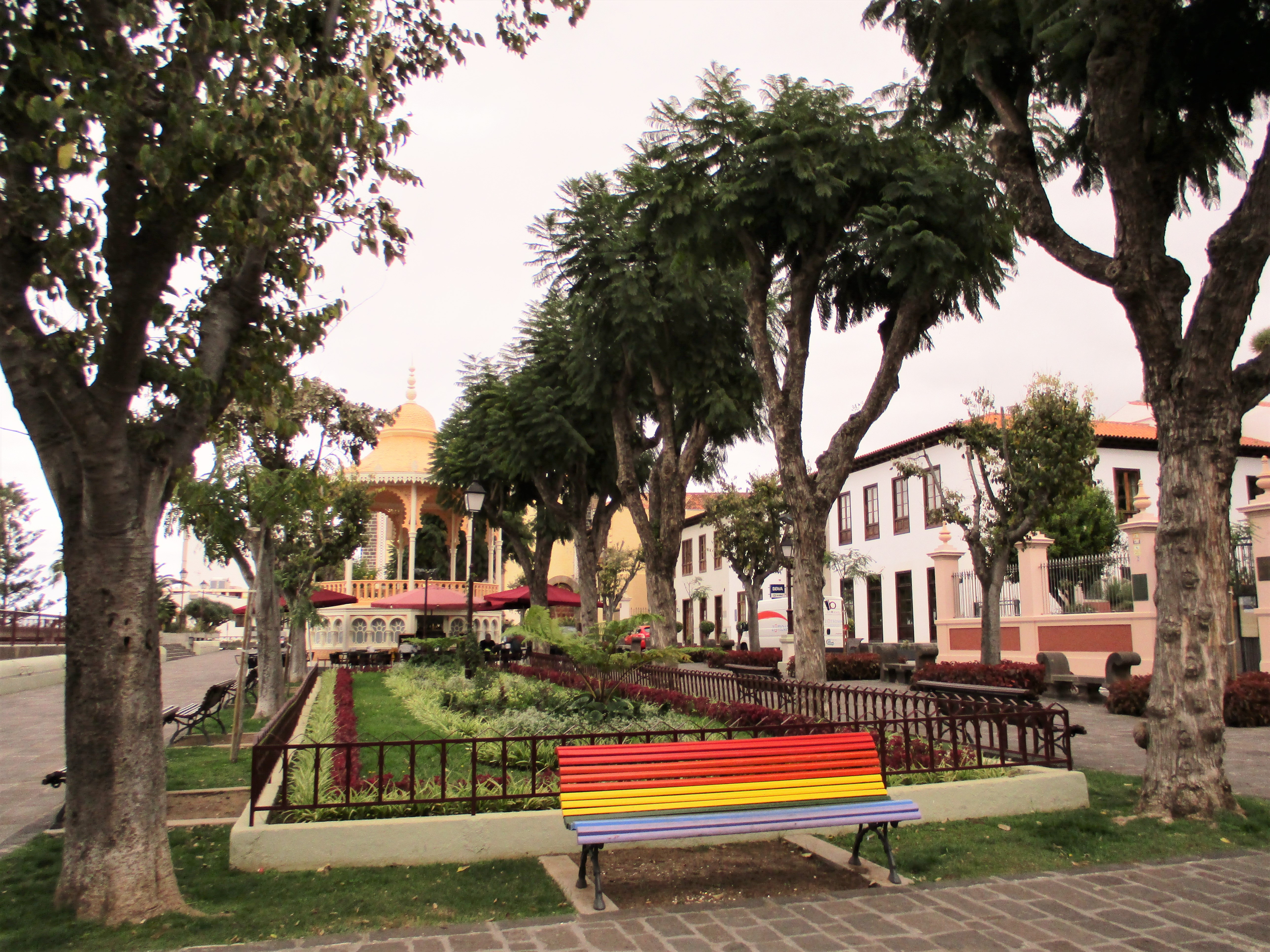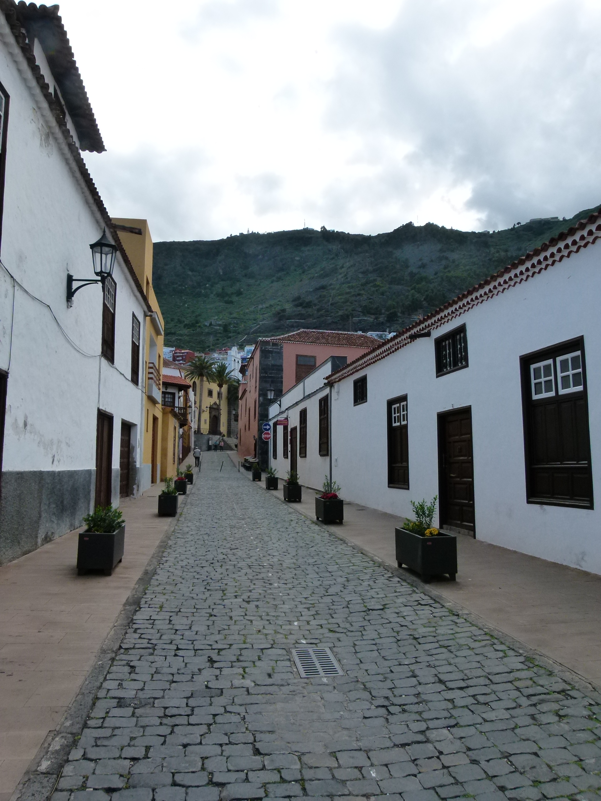 Nous rejoignons ensuite la commune de La Orotava, située dans la partie nord de l’île vers la côté atlantique. Village parmi les plus anciens de toutes les îles Canaries, il a été fondé au XVIe siècle et tire son nom de la Vallée de « Taoro ». Avantage du site : il n’a connu aucune destruction et nombre de bâtiments datent encore de cette époque. Nous déambulons donc le nez en l’air au fil de ses rues afin d’admirer places et bâtiments remarquables, et surtout colorés… de la place de la Constitution à celle de la mairie, du jardin Victoria au lycée de Taora en passant par le moulin de fabrication du Gofio (un régal) et la maison aux balcons de 1632, le lieu a de quoi bien nous occuper !