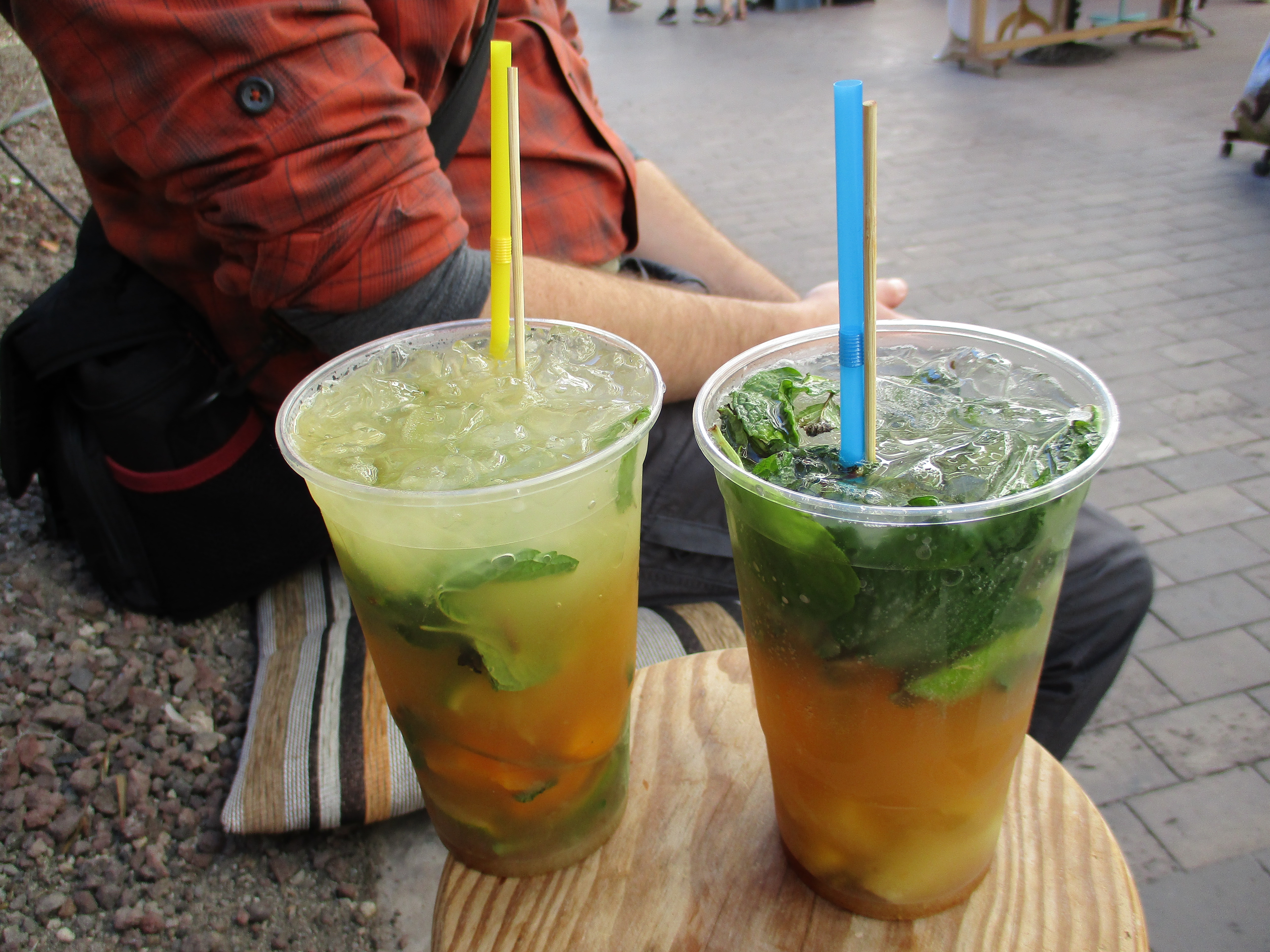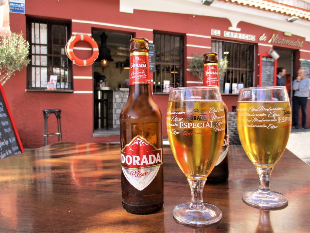 Nous traversons ensuite la zone boisée mitoyenne (toute paisible par rapport à la place que nous quittons !) et découvrons par hasard un petit lieu bien sympathique : la poissonnerie « El Capricho de Nicodemes« , qui fait également office de bistrot. L’occasion de déguster une petite Dorada, bière locale…