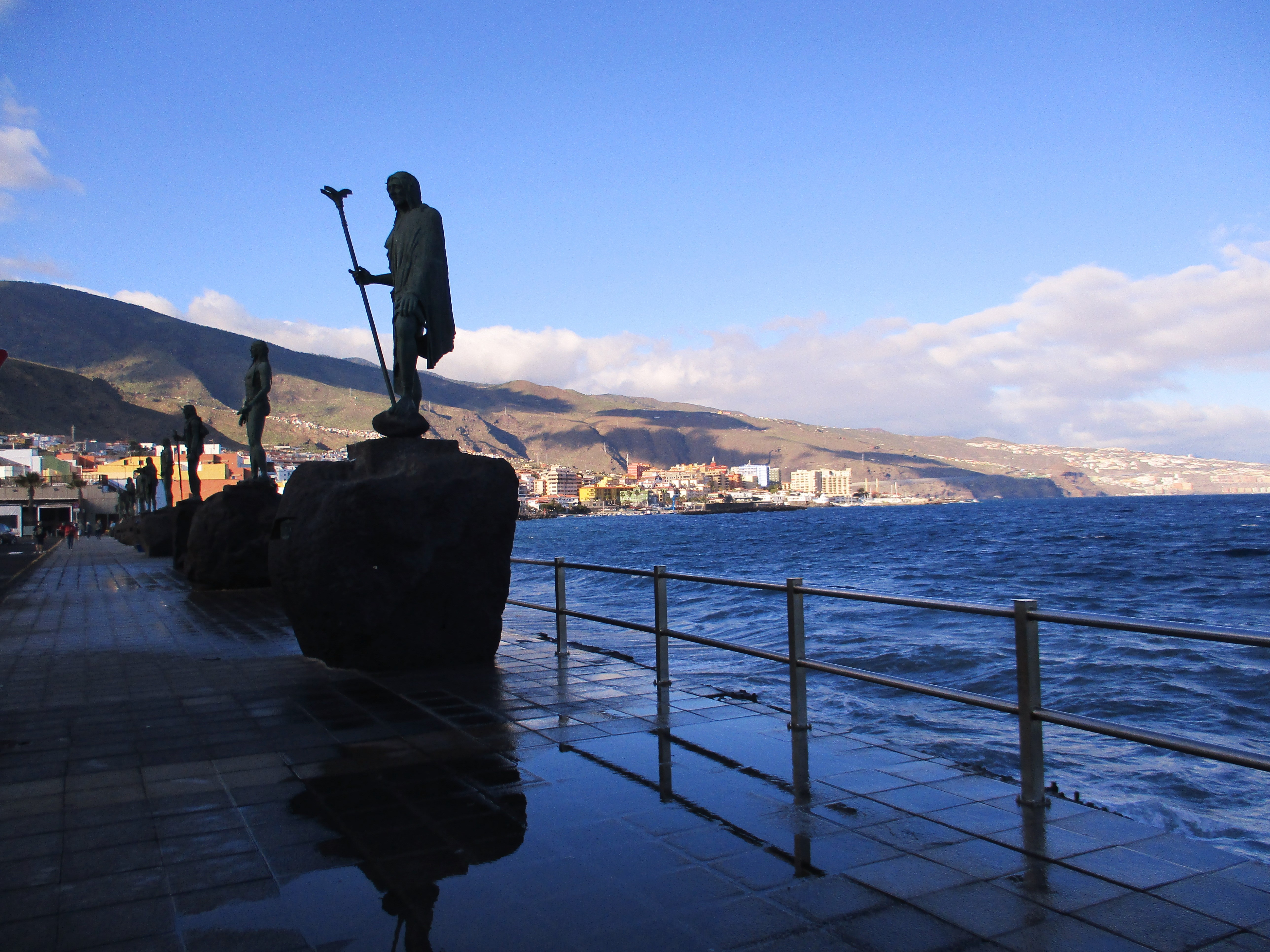 Deuxième étape étant, en effet, la ville de pêcheurs de Candelaria, que nous tenons absolument à voir pour sa place centrale, réputée impressionnante, et surtout ses statues monumentales alignées dos à l’océan, représentant les neuf rois de Tenerife d’avant la colonisation espagnole. Nous ne sommes pas déçus, l’endroit est superbe.