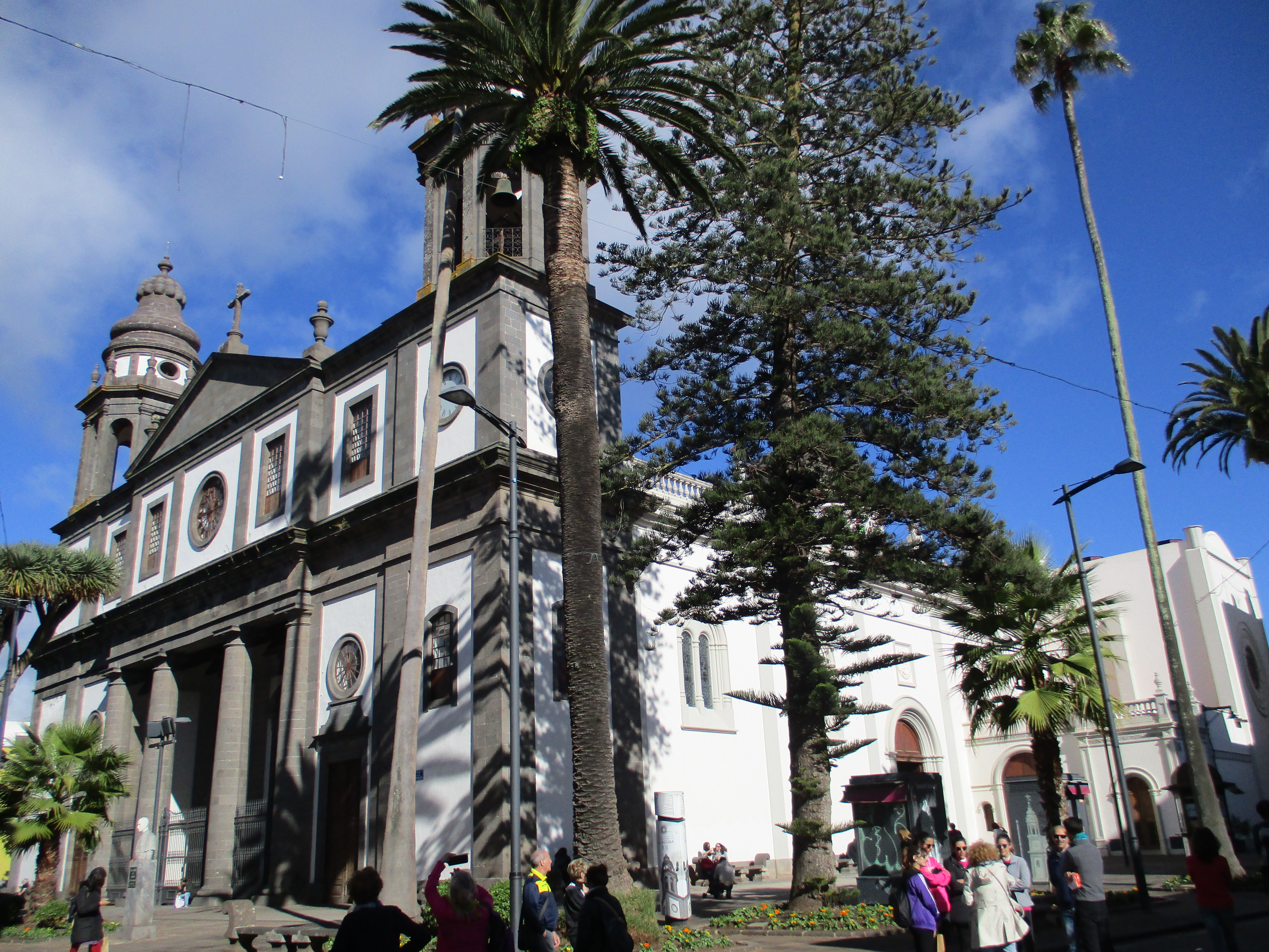 Nous rejoignons pour cette nouvelle (et ultime) journée la ville de San Cristóbal de La Laguna, la première de toutes les Îles Canaries, et la seule déclarée au Patrimoine de l’Humanité de l’UNESCO. Son architecture coloniale est en effet toujours visible aujourd’hui, de même que le tracé originel de ses rues datant du XVe siècle, et la commune entière est là encore propice à la déambulation pour les « épagneuls » que nous sommes. La cathédrale néo-classique est superbe (et ouverte), l’église de la Conception en pierre noire tout autant, de nombreux hôtels particuliers dominent les rues piétonnes, il y a de nombreux couvents, un marché lors de notre venue et même un joli musée municipal dont nous avons été chassés, comme à notre habitude (le gardien ne s’est même pas donné la peine de nous rappeler l’heure de fermeture, il a tout simplement fermé les volets de la salle, nous plongeant tous dans le noir – technique à retenir néanmoins, simple, efficace, rapide !)