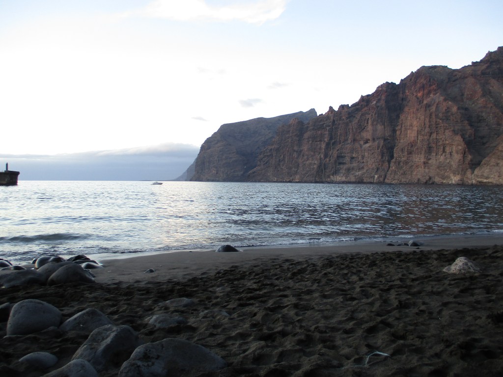 Et pour notre dernière soirée, nous décidons de retourner à Los Gigantes, notre coup de coeur à tous les deux, cette fois afin de « faire calme » et de profiter des lieux en mode « touriste ». Nous buvons donc une bière en dégustant quelques tapas au bar Neptuno de la Playa de la Arena après avoir trempé nos pieds dans l’eau (pendant que des hordes de touristes se baignaient comme en plein mois d’août), avant d’aller nous assoir et admirer les falaises depuis la crique de sable noir que nous avions déjà découverte il y a déjà trois jours pleins…