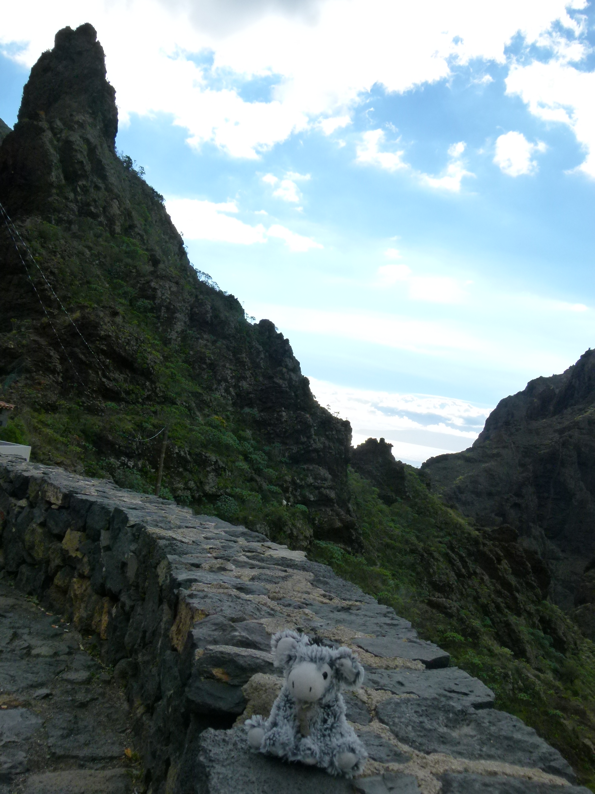 Après avoir vu ce lieu absolument magnifique, il s’agit de maintenir le niveau de la journée ! Et pour cela, nous décidons de prendre de la hauteur et de faire comprendre à notre vaillante Fiat 500 que jusqu’à présent, les trajets, c’était de la rigolade : direction Masca, située à 18 km de Los Gigantes seulement… mais il ne faut jamais se fier aux cartes en zone de montagne, car le parcours est bien périlleux ! Entre la route particulièrement raide, les virages en épingle à cheveux, les touristes en perdition qui sont venus en SUV et ne savent pas tourner en une fois, et le bus de tourisme qui est venu face à nous et avait décidé de passer coûte que coûte là maintenant tout de suite, quitte à nous jeter dans le fossé, nous avons été bien contents en voyant apparaitre le village au loin !