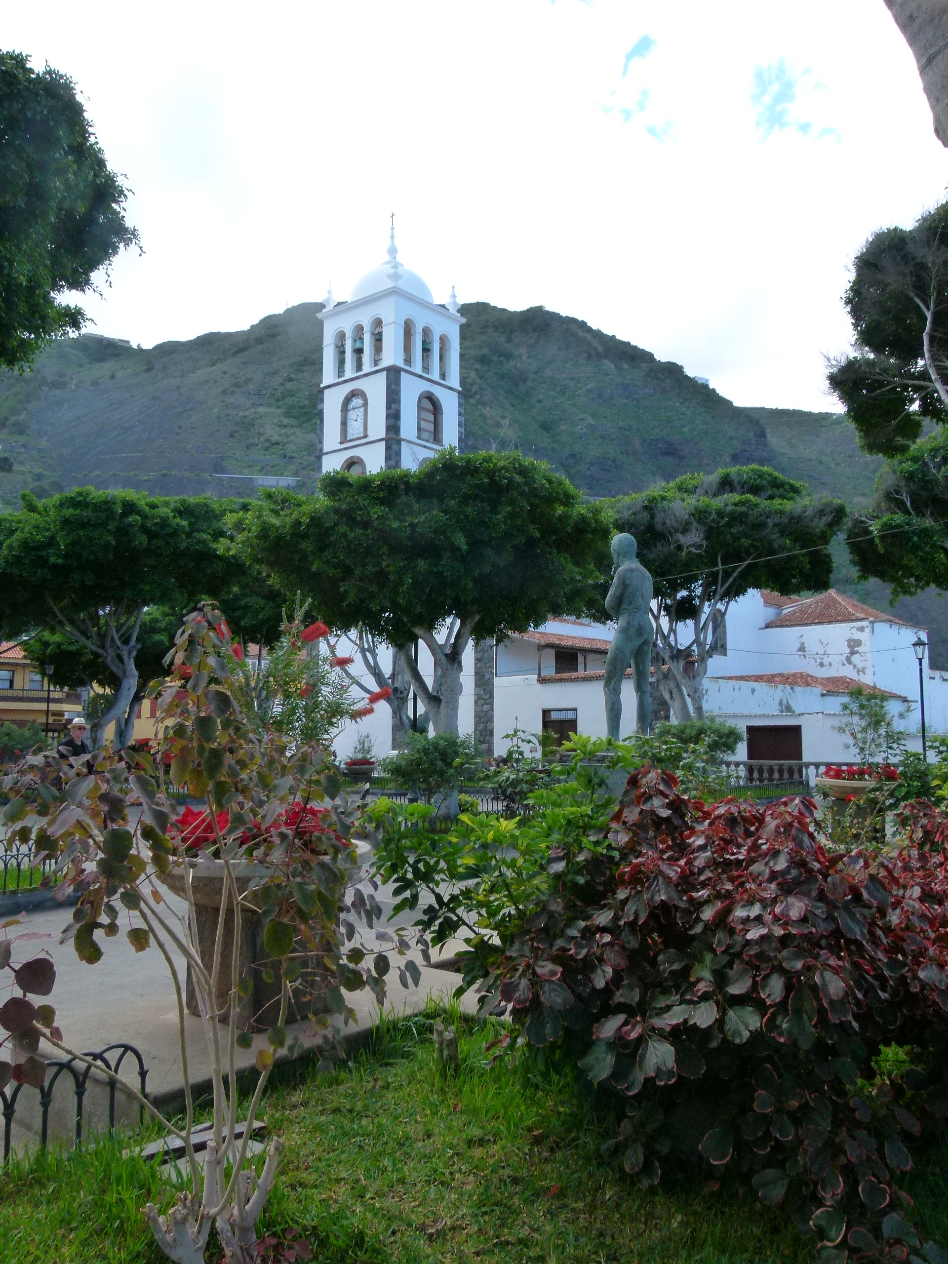 Nous continuons notre trajet sur la route côtière et aboutissons à Garachico, petite cité maritime qui a gardé son architecture coloniale, et qui était d’ailleurs le port marchand principal de l’île avant l’éruption volcanique de 1706 qui l’a littéralement enseveli ! Très connue des touristes et des locaux, Garachico est notamment fréquentée pour ses piscines naturelles en bord d’océan. Nous prenons plaisir à marcher tout simplement le long de la côte, allons voir la place de la Liberté et l’église Notre Dame des Anges qui s’y situe (ouverte !), nous reposons dans un jardin public avec vue sur l’immensité, buvons une « Dorada » le long d’une ruelle, et mangeons même une glace chez le glacier « La Alsaciana« , pour le symbole… Un joli moment un peu hors du temps, très paisible.
