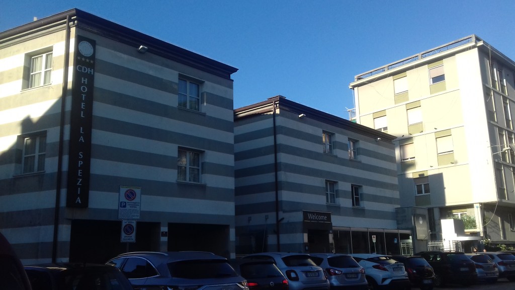 Nous arrivons finalement à la Spezia prendre possession de notre hôtel (le CDH Hôtel, rue du XX novembre, de la chaîne Compagnia degli hotel) et de notre chambre – que dis-je, de notre suite tellement la pièce est immense ! Bémol du lieu : il est difficile à trouver, imbriqué au cœur de la vieille ville et visiblement accessible uniquement depuis des rues à trafic limité aux résidents… Enfin, c’est ce qu’on en a déduit au regard de l’amende qui nous a suivi à la maison quelques semaines plus tard !