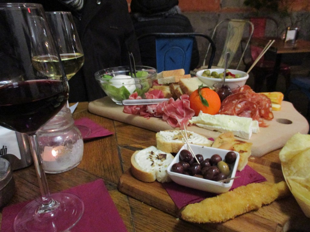 Retour à Chiavari pour terminer cette belle journée bien chargée, et le moins qu’on puisse dire c’est que nous allons être bien nourris ! Naïfs que nous sommes, avions-nous donc oublié ce qu’il se passe lorsque l’on commande deux bières à l’heure de l’apéritif ? La planchette qui nous rejoint à la table du Piccolo Bar place Mazzini est absolument magnifique… mais pas suffisante tout de même pour nourrir deux aventuriers. Alors nous migrons pour manger ailleurs, et reprenons une planchette à partager qui s’avère être gargantuesque, une merveille mêlant viande, fromages et fruits. De quoi bien reprendre des forces (et bien dormir).