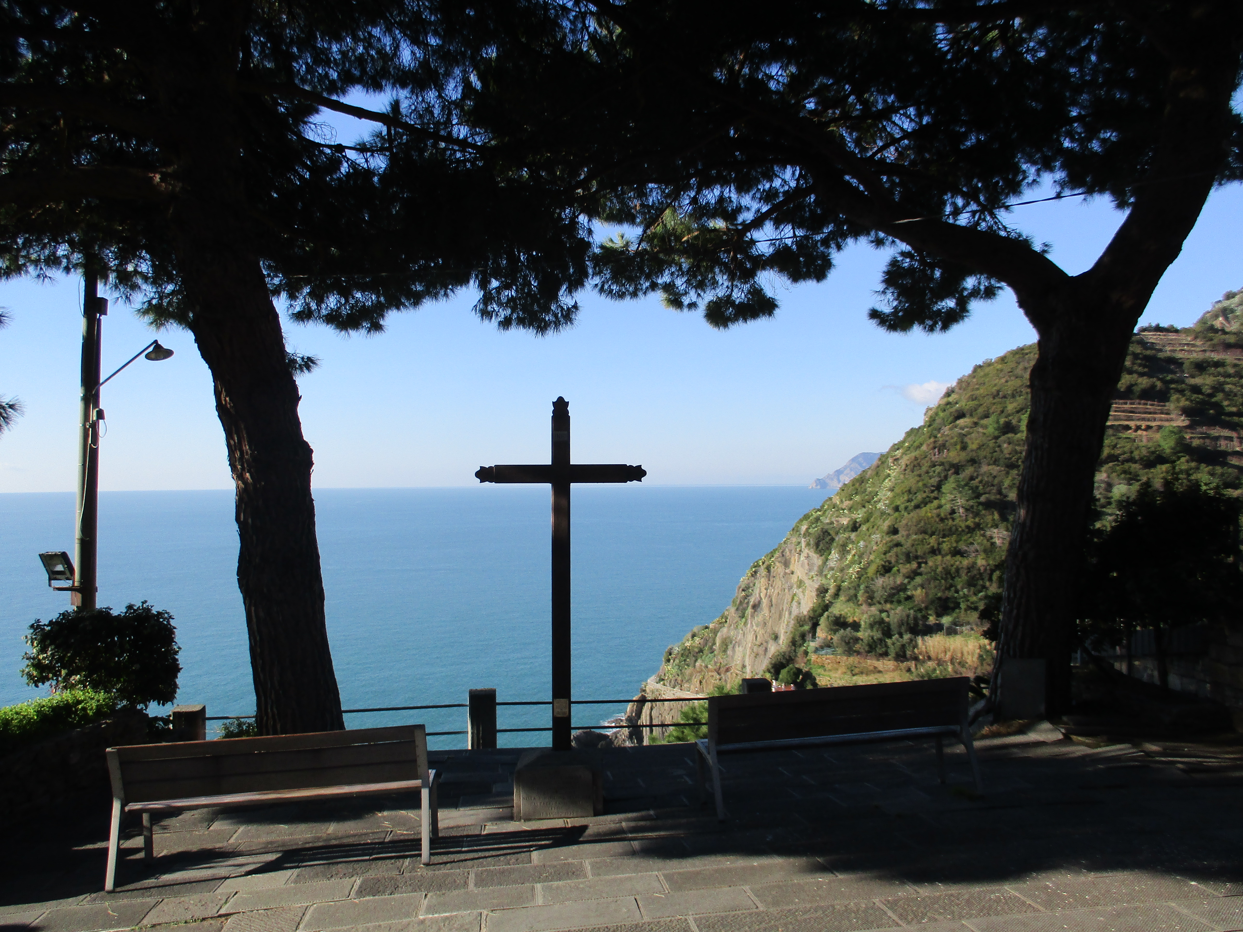 Là encore, nous déambulons le nez en l’air pour admirer les maisons en pierre et la vue sur la mer. On visite l’église Saint Pierre du XIVe siècle, l’église Sainte-Catherine, on va admirer le paysage vers le village de Manarola depuis les vestiges d’une tour génoise… Nous buvons même une petite bière face au paysage magnifique au bar La Scuna wine & beer, malheureusement de marque allemande, adaptée au touriste, on va dire ! De notre côté, nous préférons largement les brasseries artisanales, mais la vue a largement compensé cette « frustration ».