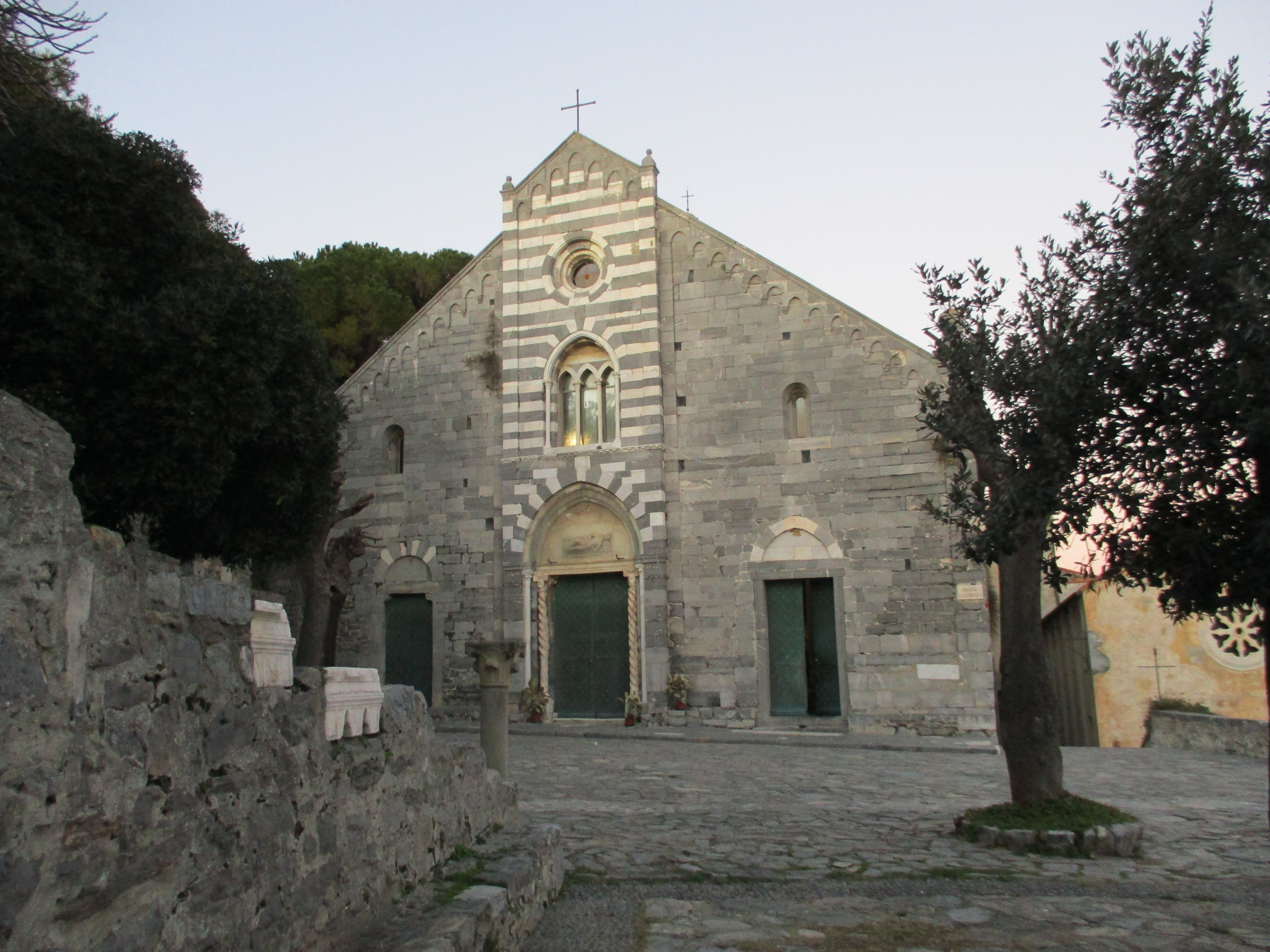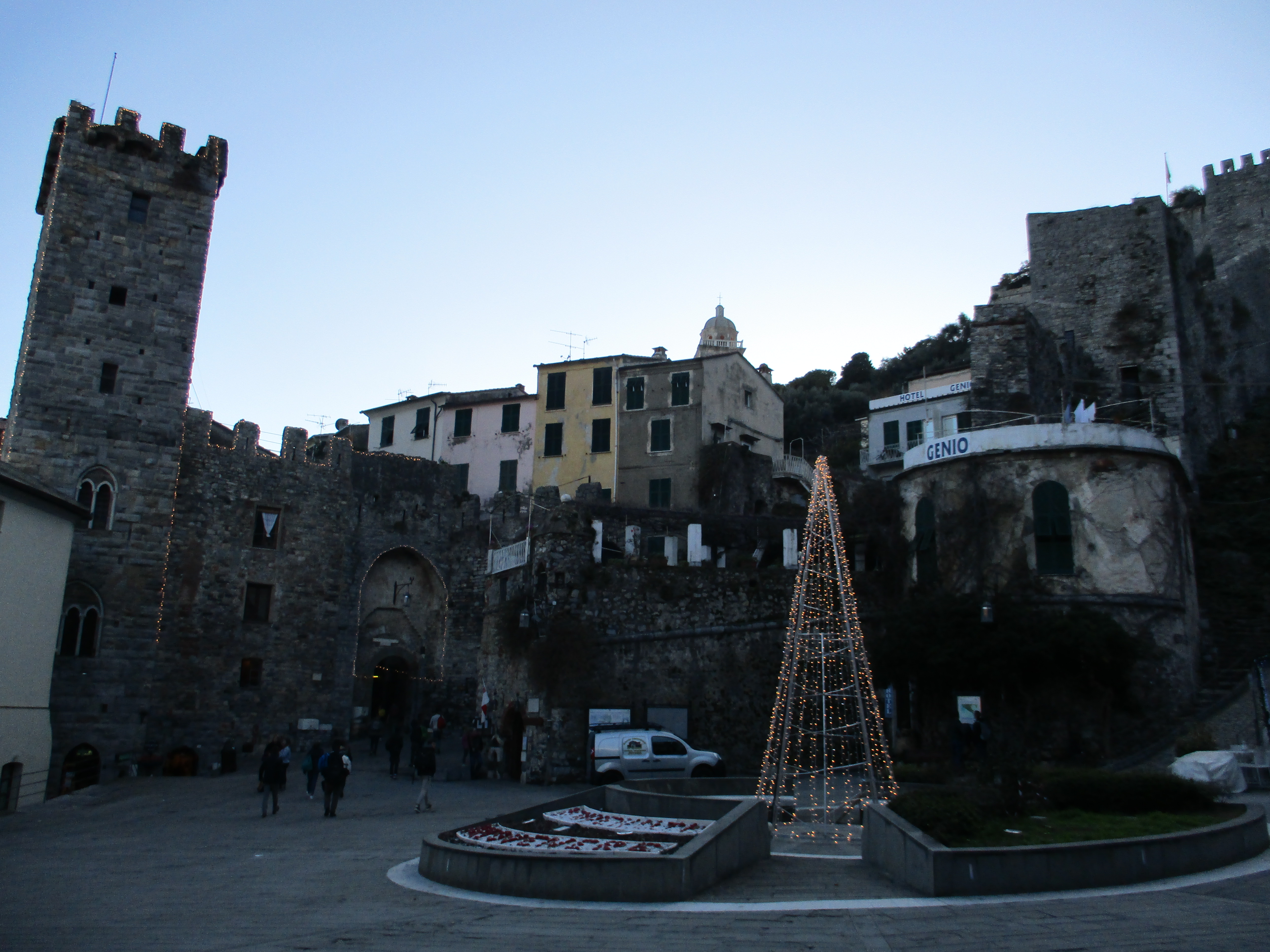 Et avant qu’il ne fasse tout à fait nuit, nous décidons d’encore gravir la colline et de monter à l’église Saint Laurent, qui domine la ville depuis les hauteurs. Également du XIIe siècle, également à rayures, également belle et paisible devant une grande place. Et nous nous dépêchons de monter au château Doria (comme à Monterosso) qui domine la ville, car il fait désormais nuit. On profite vraiment de nos vacances au maximum !