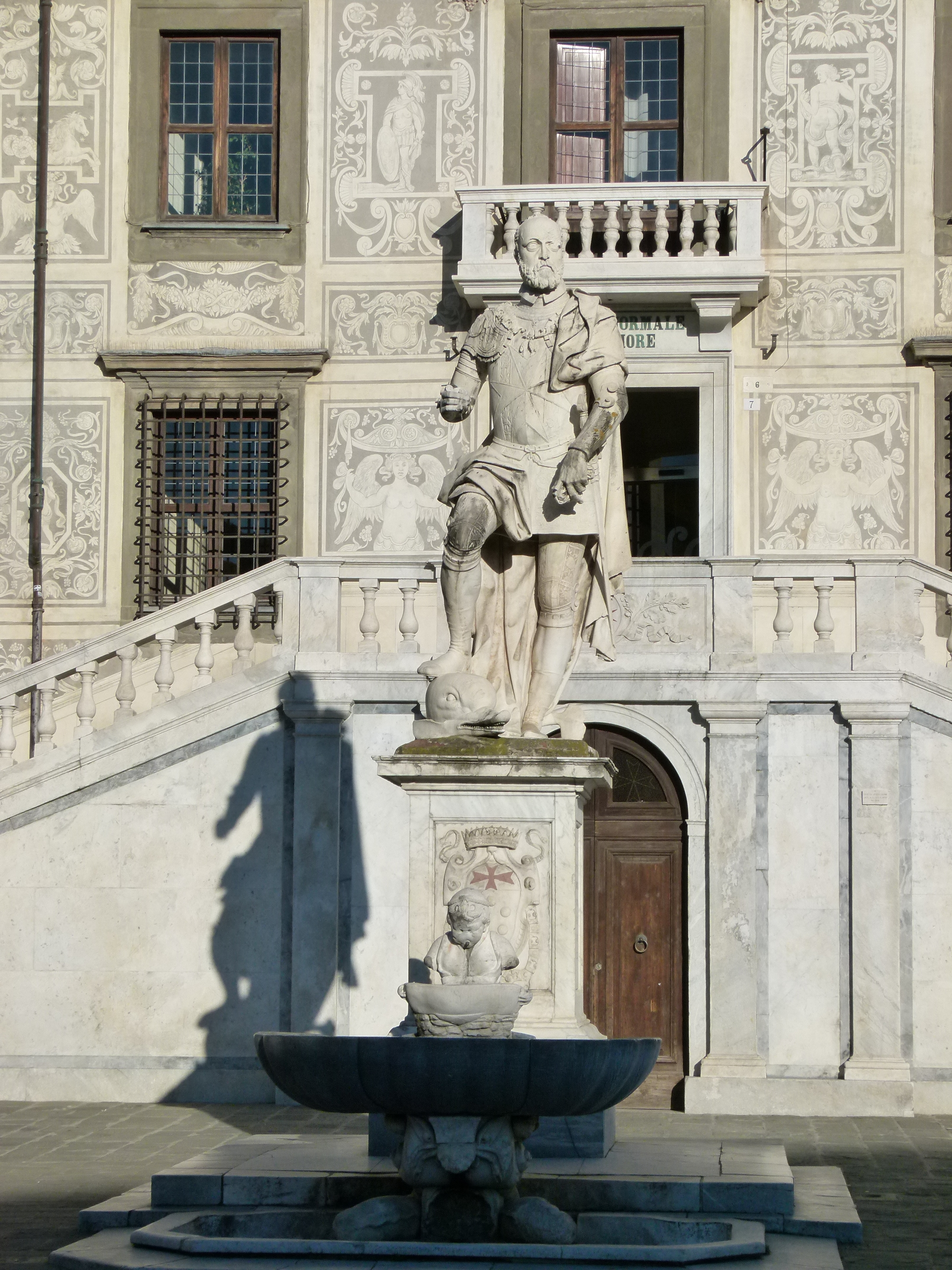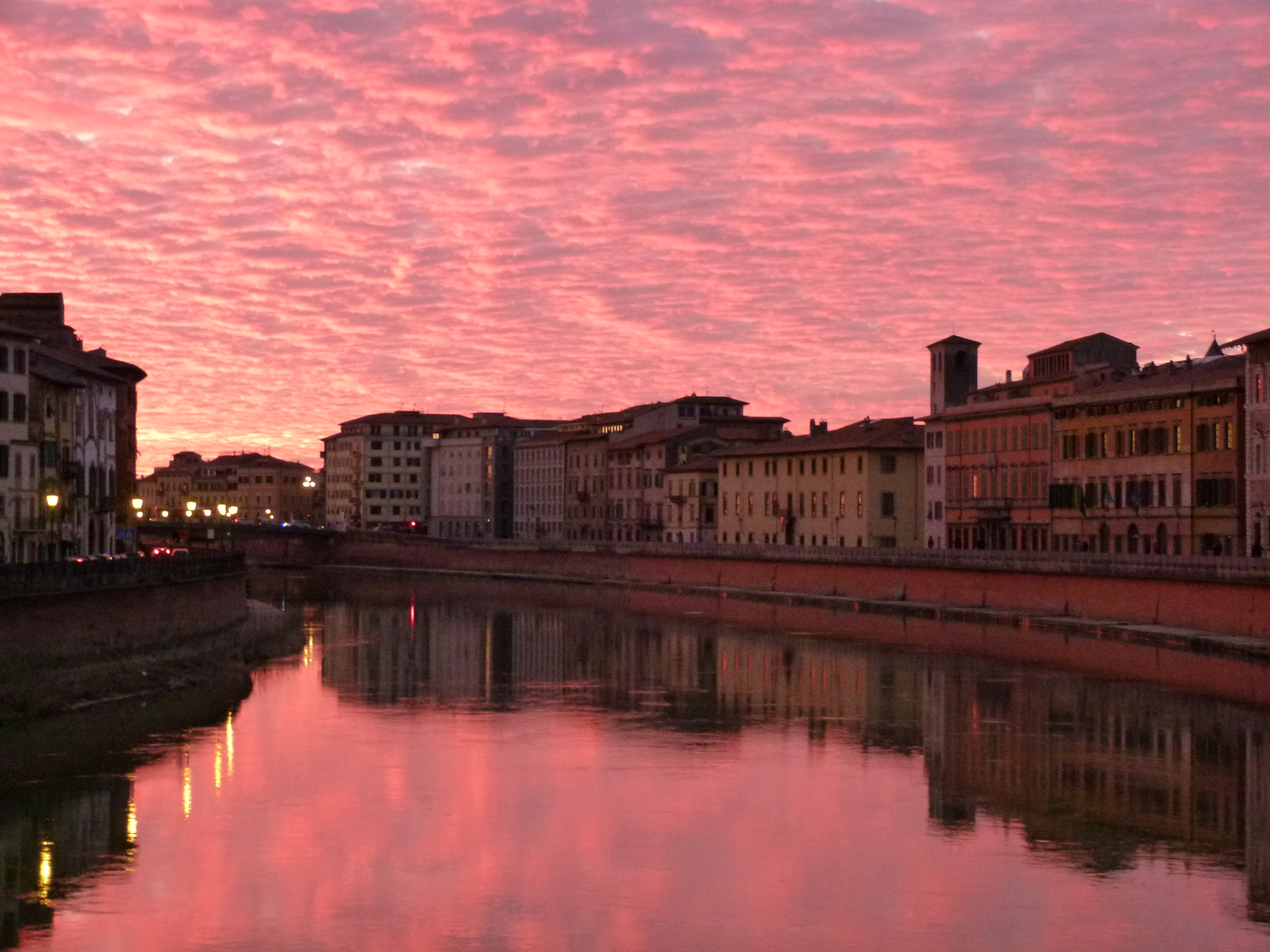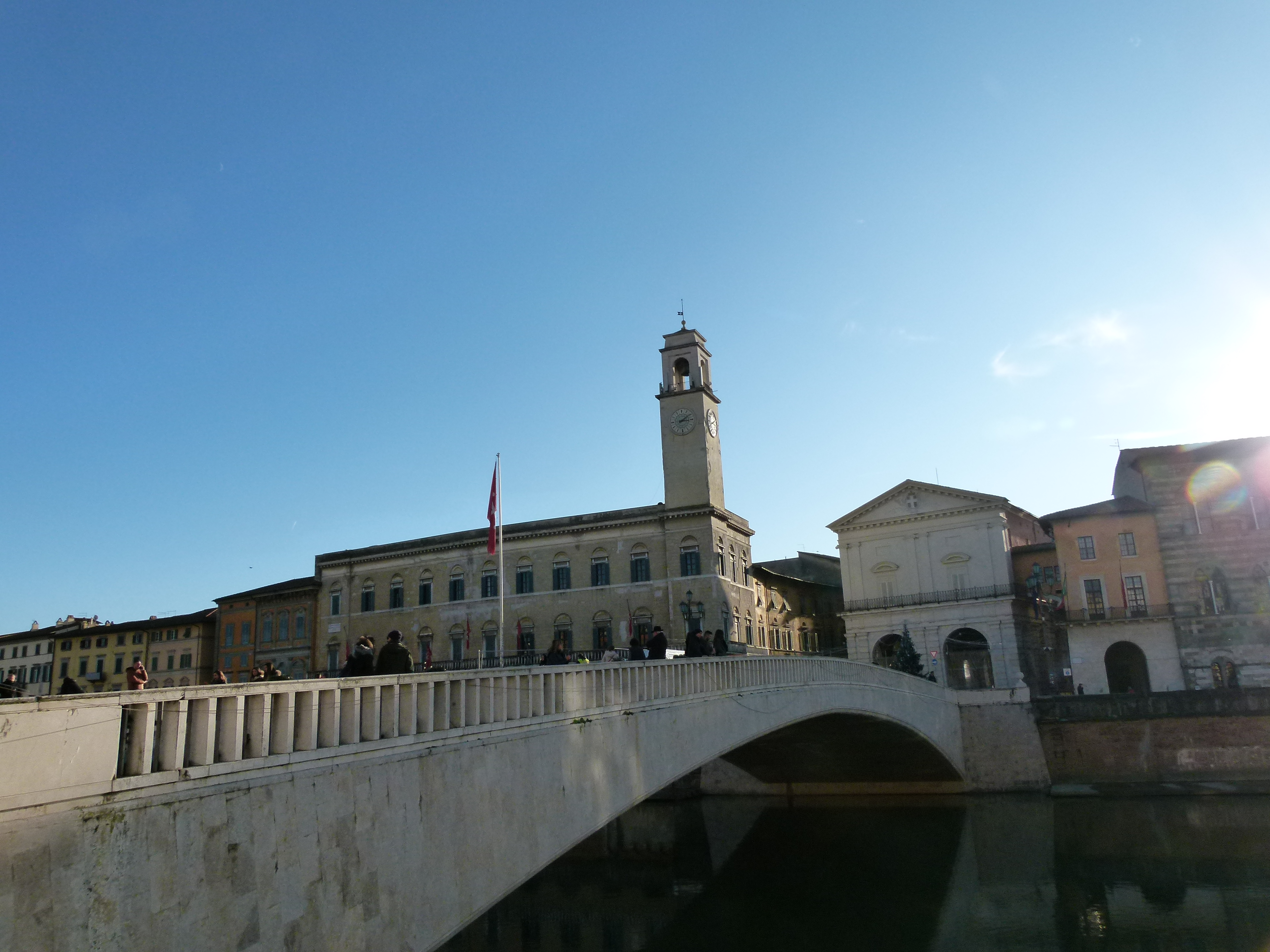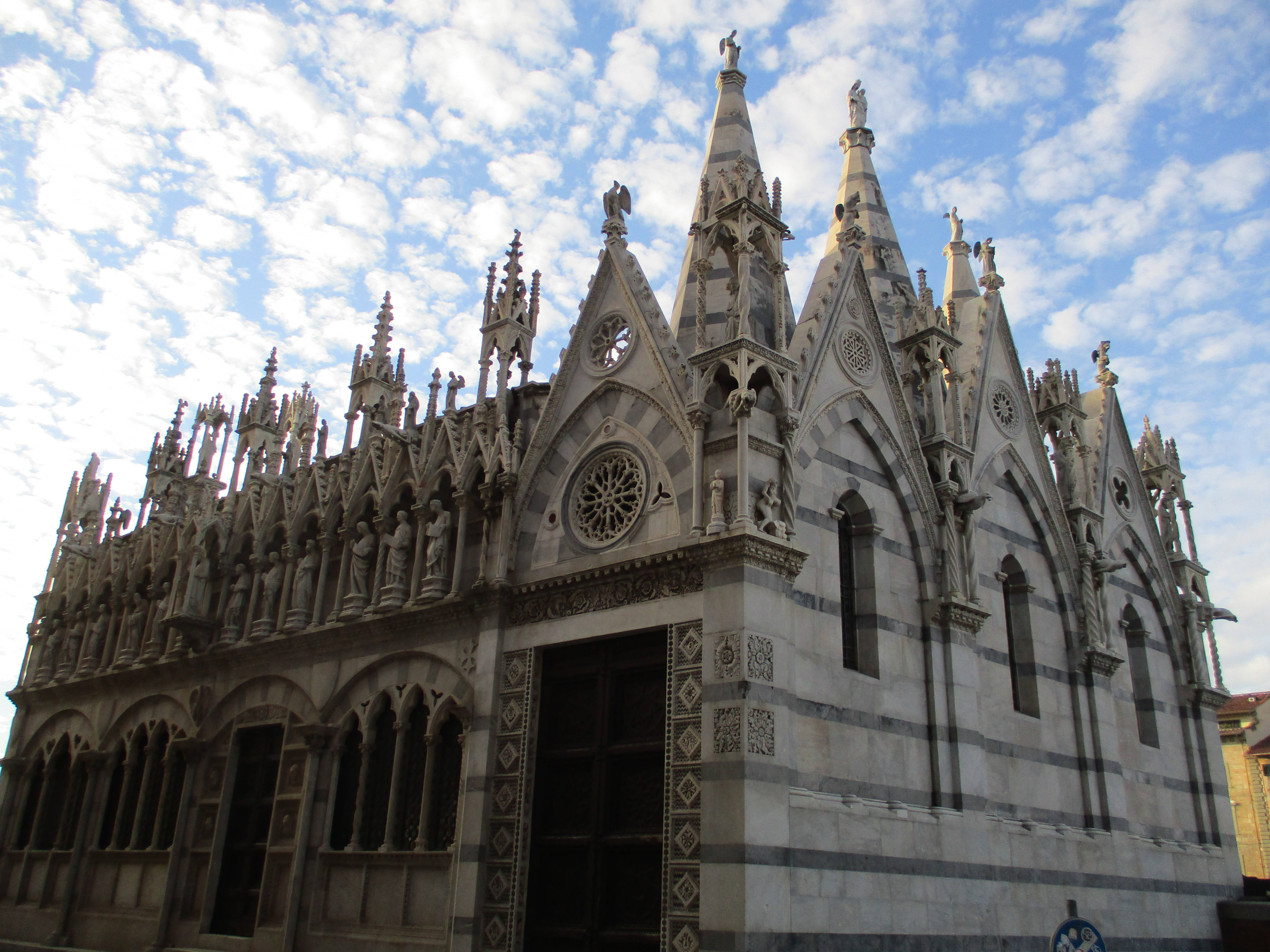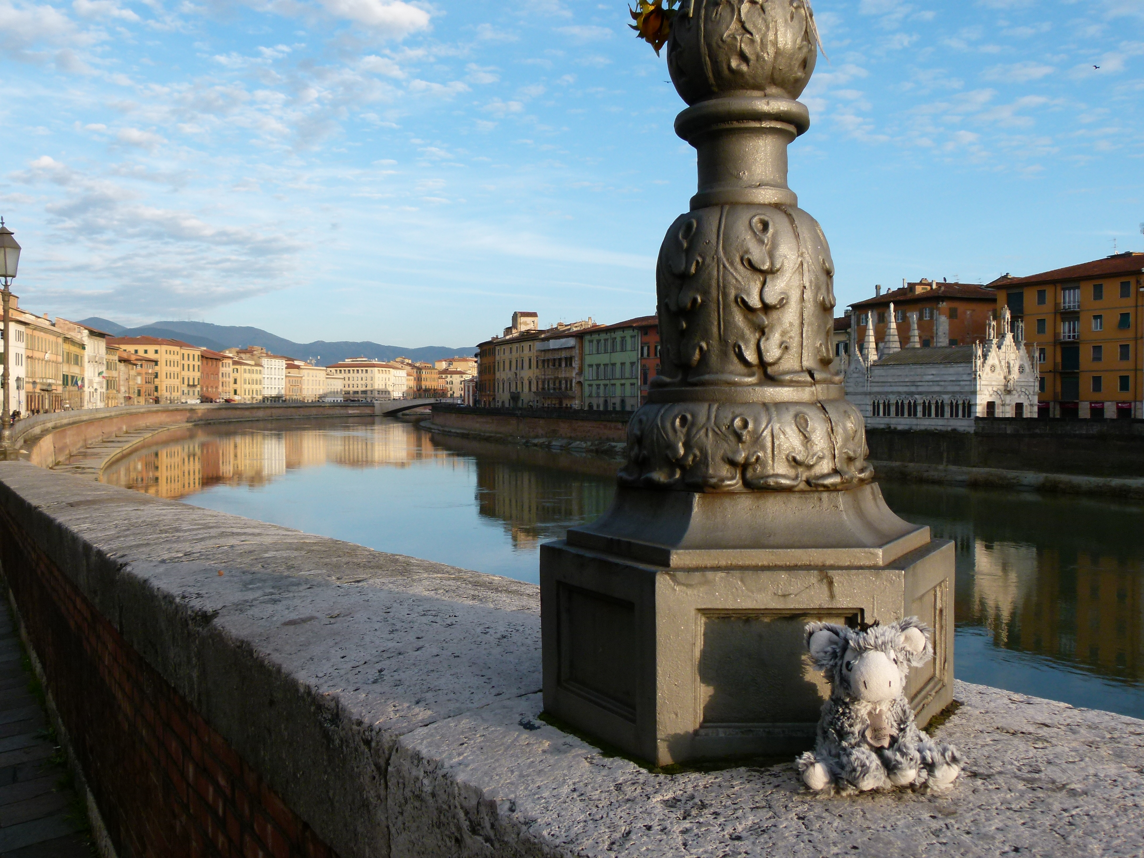 Mais comme toujours, il ne faut pas réduire une ville à un seul site, et ici Pise à sa seule tour, il y a tout un centre-ville à découvrir en ce dernier jour de l’année ! Nous rejoignons doucement le fleuve Arno en déambulant au détour de places, de palais et d’églises (fermées). Celle de Santa Maria della Spina, construite au bord du fleuve, est pour nous une belle frustration, nous aurions été curieux d’en voir l’intérieur !