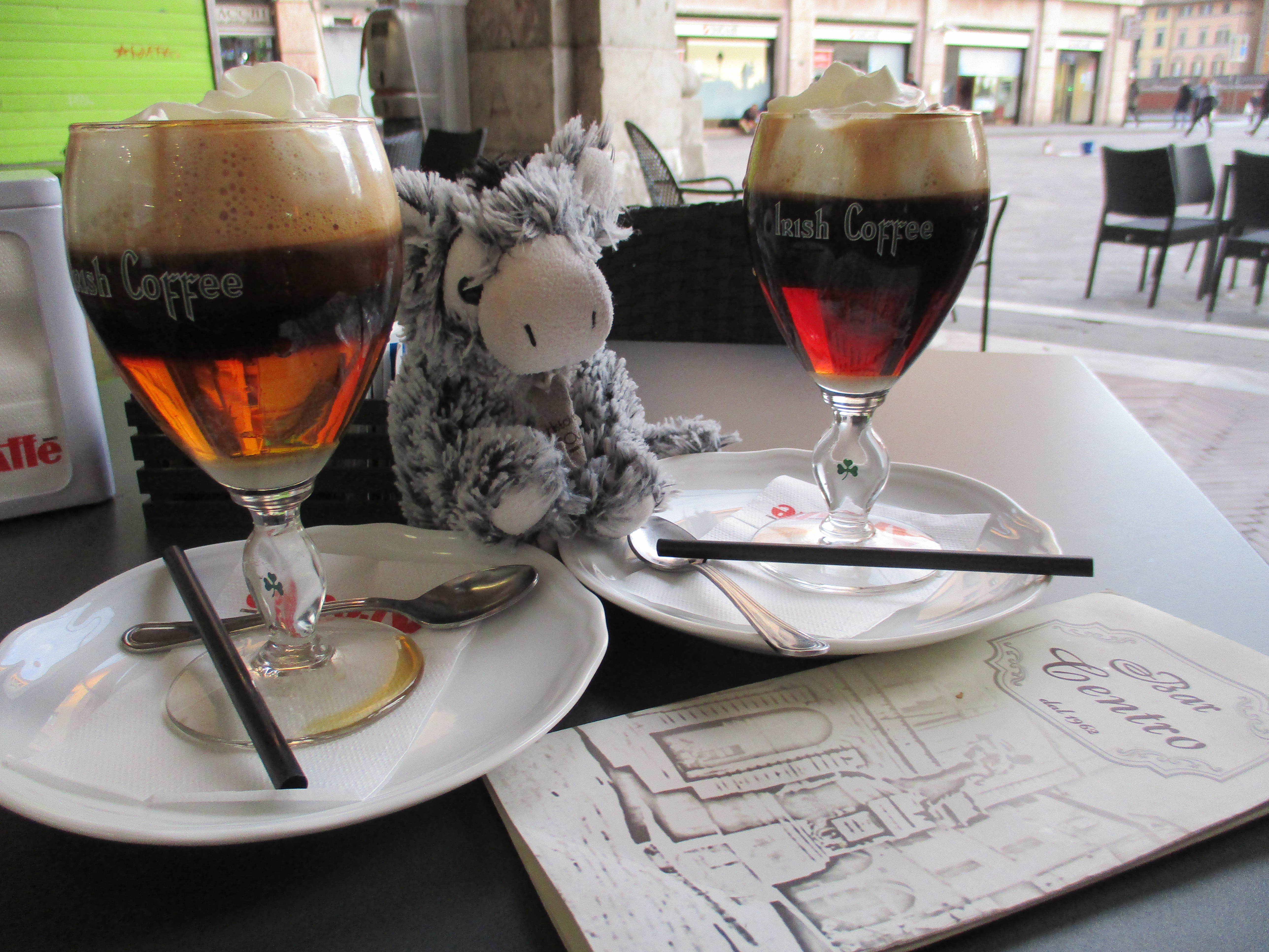 Malgré le temps magnifique (ou à cause de), la température est particulièrement froide : nous rejoignons donc la place Garibaldi et la statue du grand homme (incontournable en Italie) située juste à côté des quais du fleuve, face à un pont, via la place des cavaliers et sa statue de Côme 1er située juste derrière notre B&B. Le Bar Centro nous permettra de nous réchauffer avec un Irish Coffee italien (on remplace le whisky par de l’amaretto, et ça change tout !)