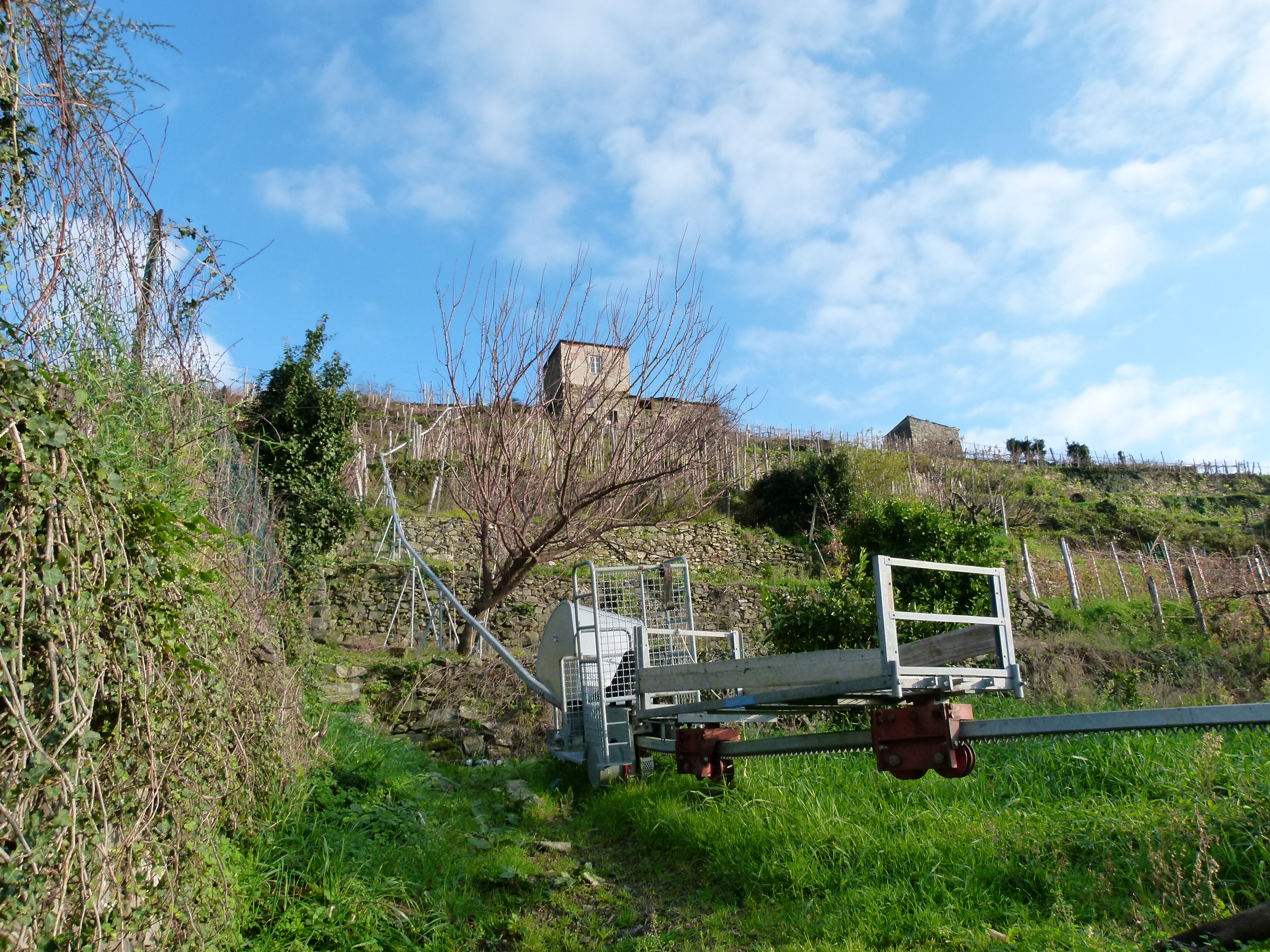 Pour la deuxième visite de la journée, nous filons vers Corniglia, le seul village des Cinque Terre n’ayant pas d’accès à la mer. Il faut d’ailleurs un petit peu marcher pour atteindre son centre, mais la vue vaut tellement le détour que ce n’est absolument pas une contrainte. Le secteur est viticole et l’on observe les véhicules destinés à l’entretien des vignes, adaptés à l’inclinaison de la pente, totalement différents de ceux de par chez nous en Alsace !