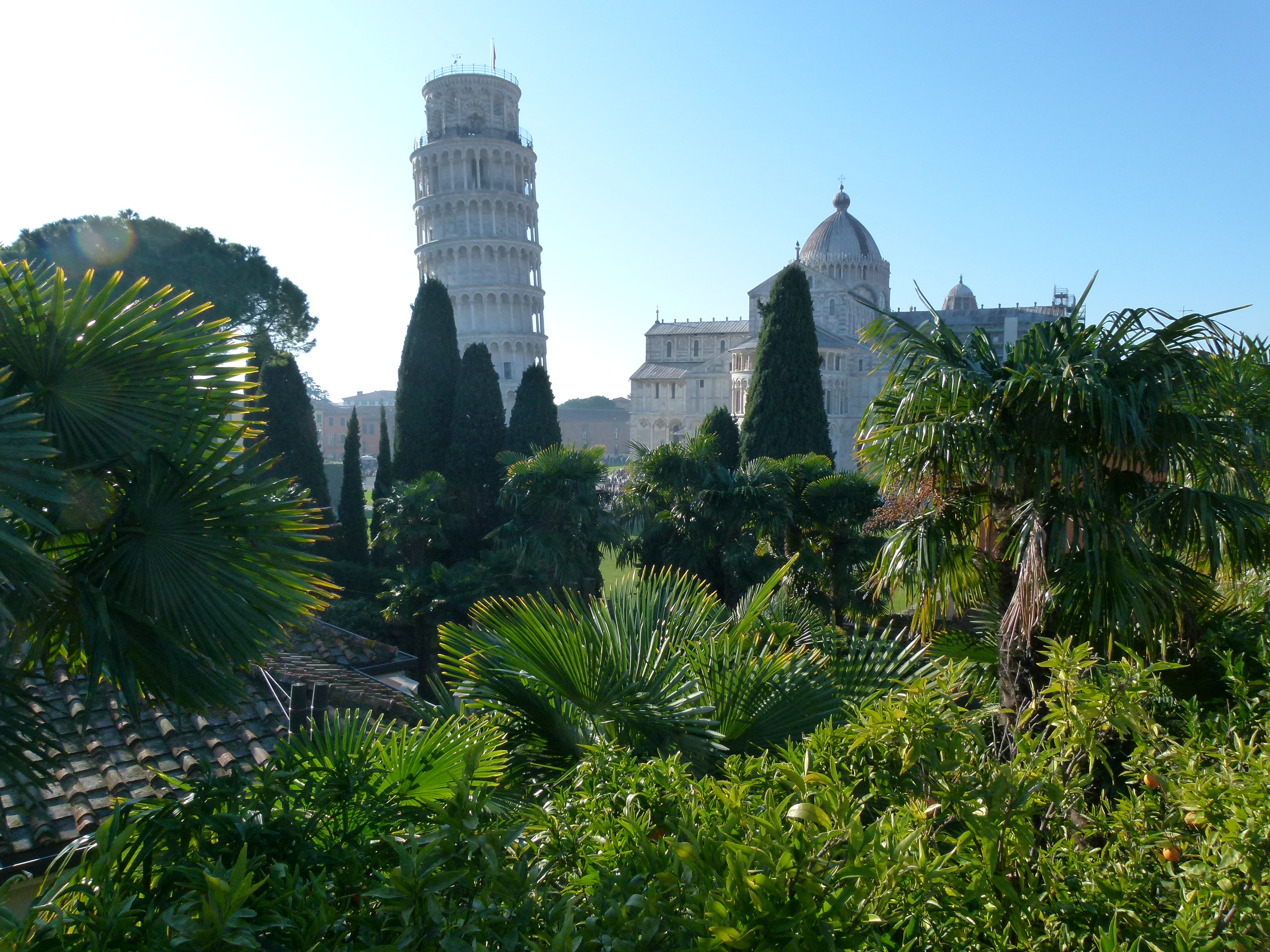 Nous débutons notre journée à Pise par un bon petit déjeuner servi dans la salle commune de l’établissement, et par la dame qui nous avait accueillis la veille. L’espace dessert les six chambres, une grande baie vitrée donne sur un jardin avec des citronniers… Nous apprenons également la raison du nom de ce lieu : c’est la dénomination historique du jardin botanique crée par Côme de Médicis en 1544 et qui se situe quasiment en face le B&B. ça, ça nous intéresse ! (spoiler alerte : il sera fermé) !