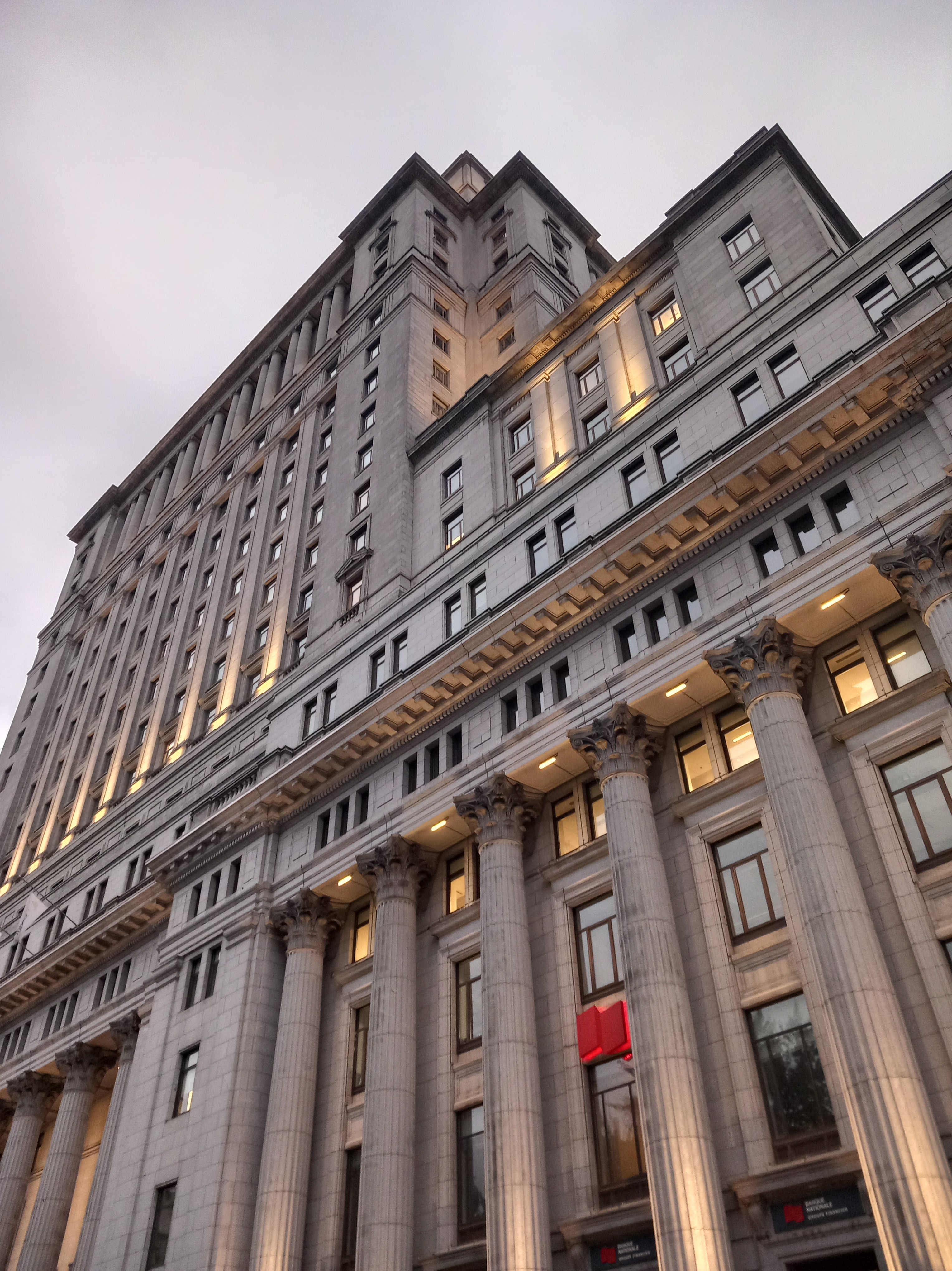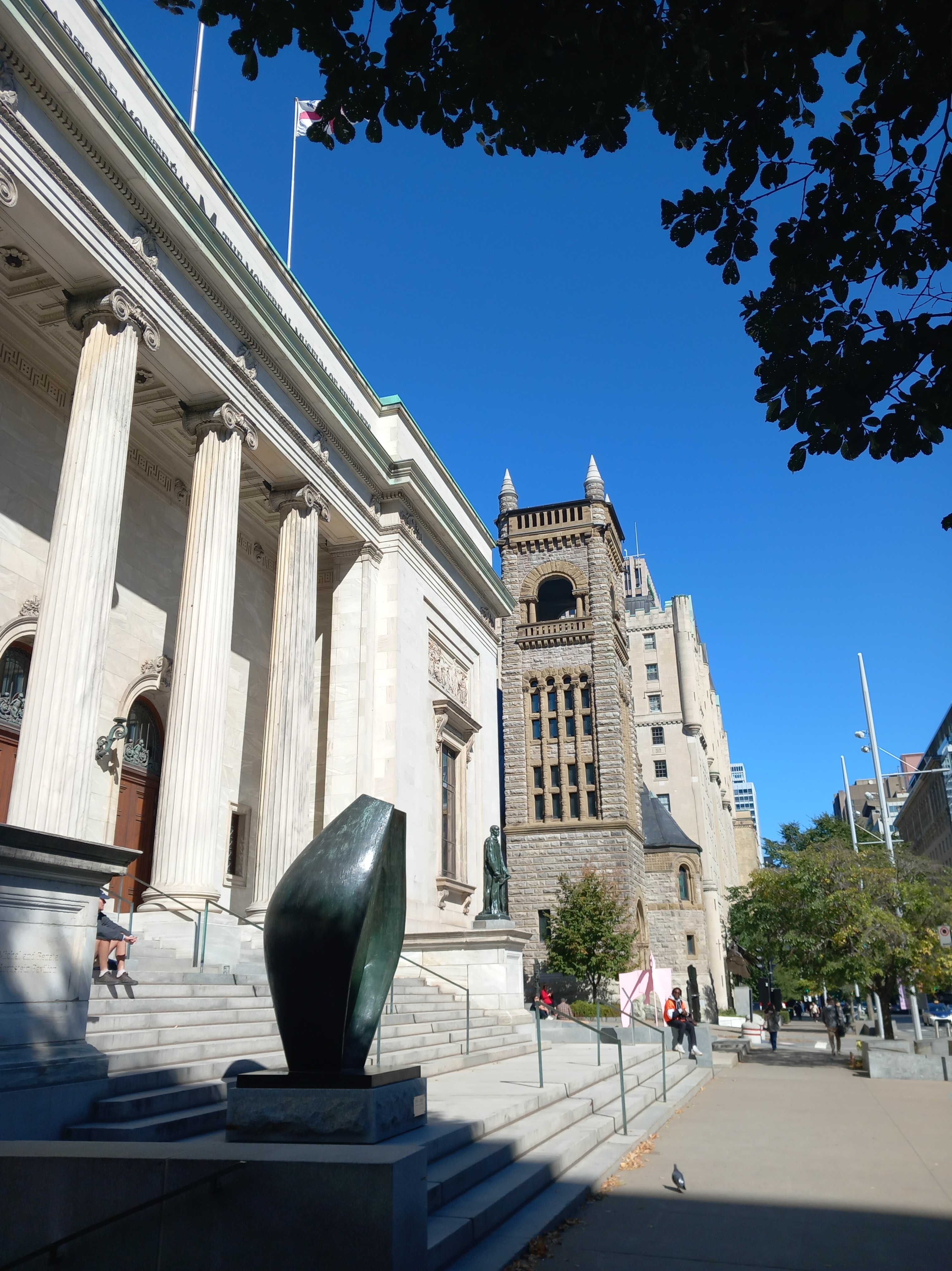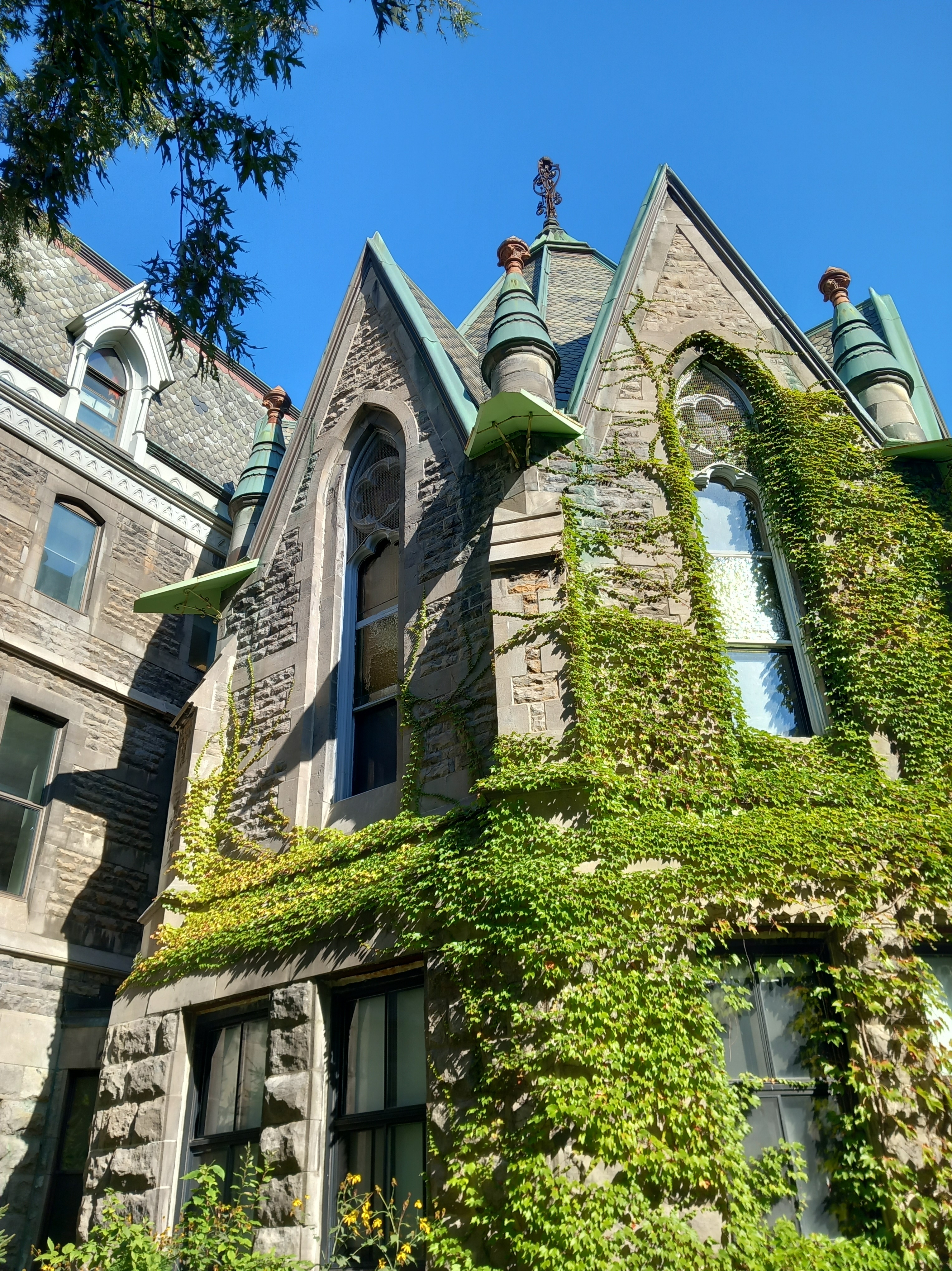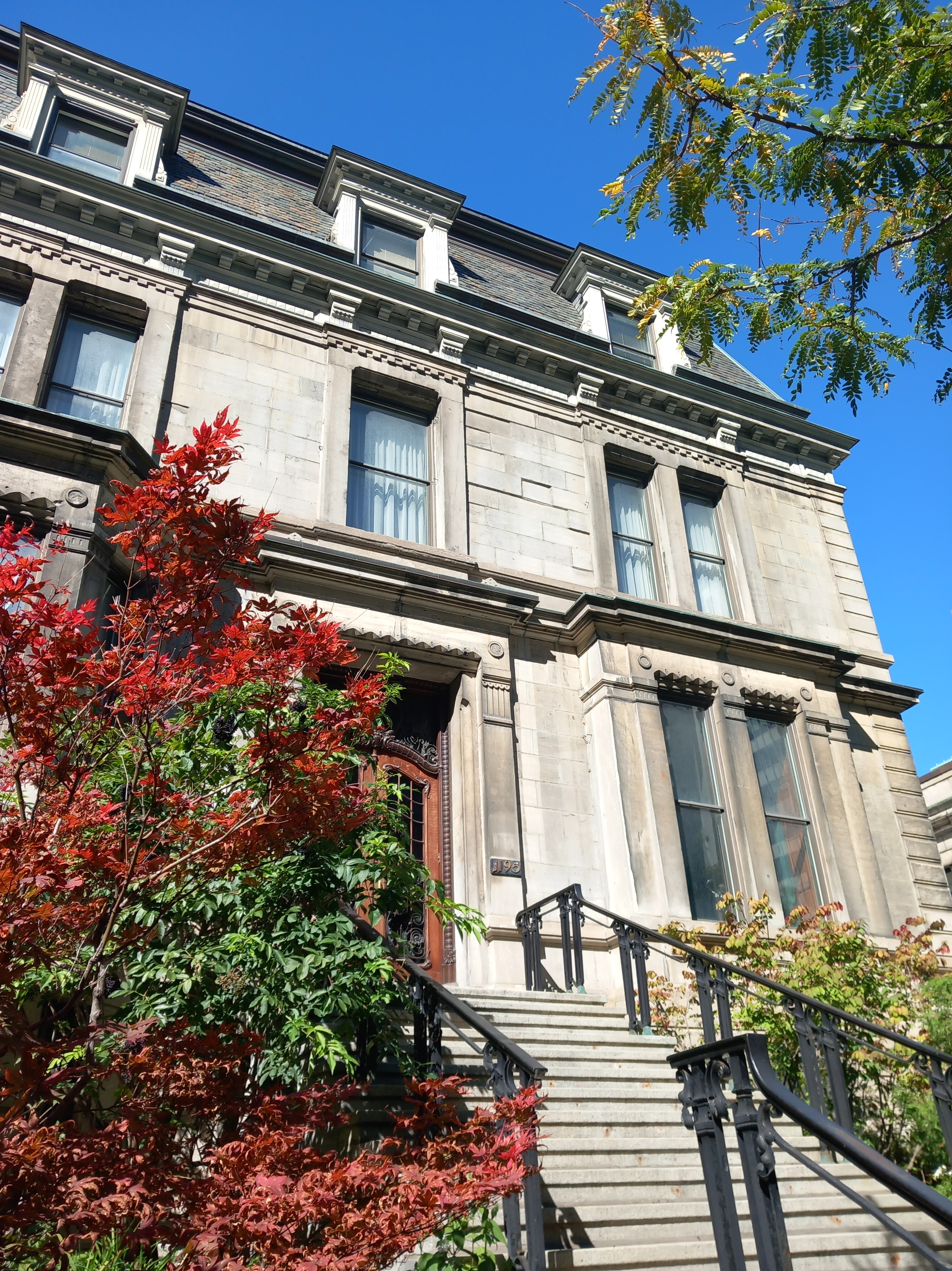 Pour nos derniers moments à Montréal, après un passage au sein du campus afin de nous imprégner de l’ambiance étudiante que nous ne connaitrons jamais plus (bac 2003 et 2009 #darons), nous décidons d’arpenter le quartier du Mille Carré doré et d’y observer les maisons style art néogothique, romanesque, néoclassique, art nouveau… Bref, les grosses demeures érigées à partir des années 1850 et aujourd’hui devenues des hôtels, des banques… ou encore des maisons d’habitation, d’ailleurs ! Le contraste est surprenant : d’un côté de l’avenue, les gratte-ciels ; de l’autre, des maisons d’un étage avec jardin et jolis portails.