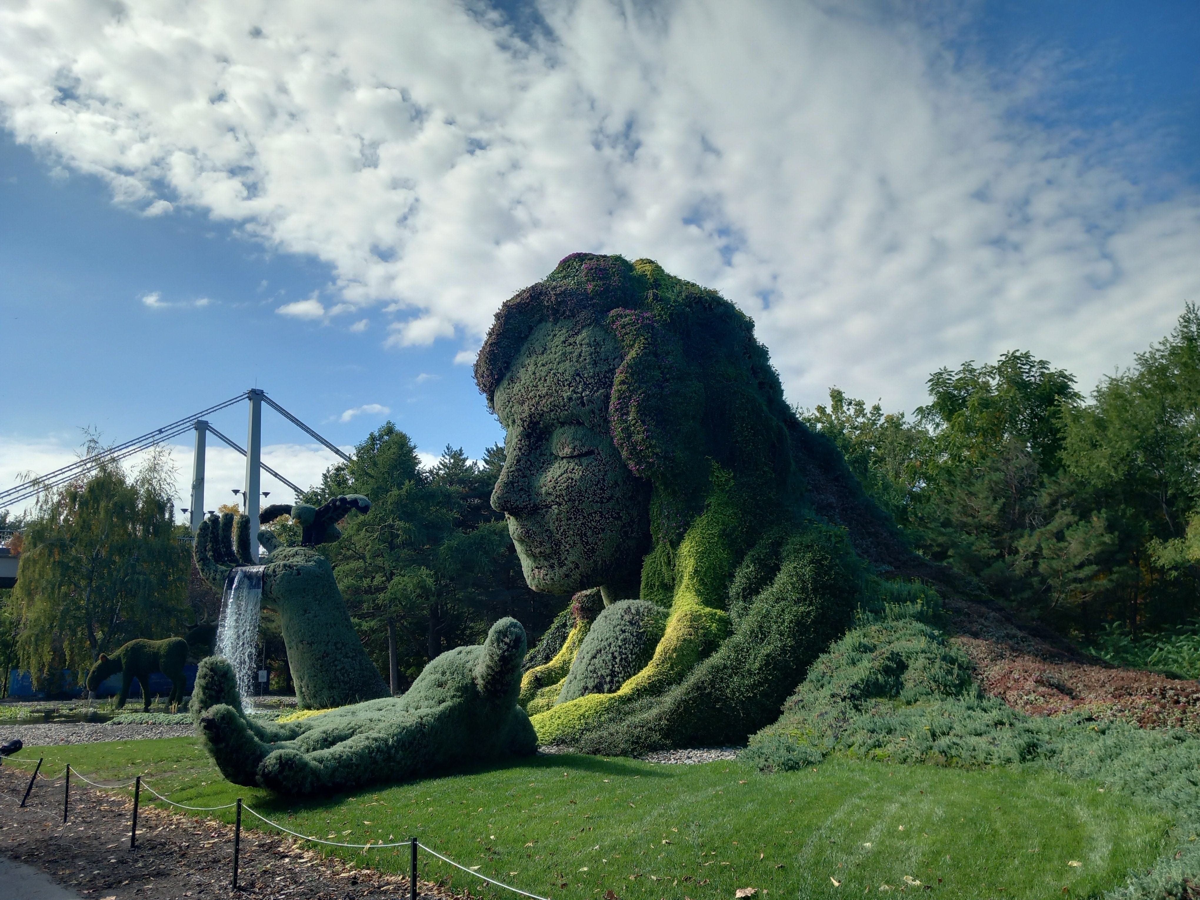 Après une bonne nuit réparatrice (on en avait besoin !), nous décidons de profiter de la magnifique journée qui s’annonce afin de visiter les îles Notre Dame et Sainte-Hélène, premier arrêt de métro après notre hôtel, la première accueillant notamment le parc Jean Drapeau. La matinée est donc dédiée à la contemplation, entre arbres commençant à rougeoyer, jardin peuplé de sculptures végétales, découverte de la Tour Levis (ancien château d’eau) en point culminant, exposition photo par une native… Et dans une autre ambiance, on peut même marcher sur le circuit Gilles Villeneuve (en évitant les vélos qui peuvent tester le parcours !).