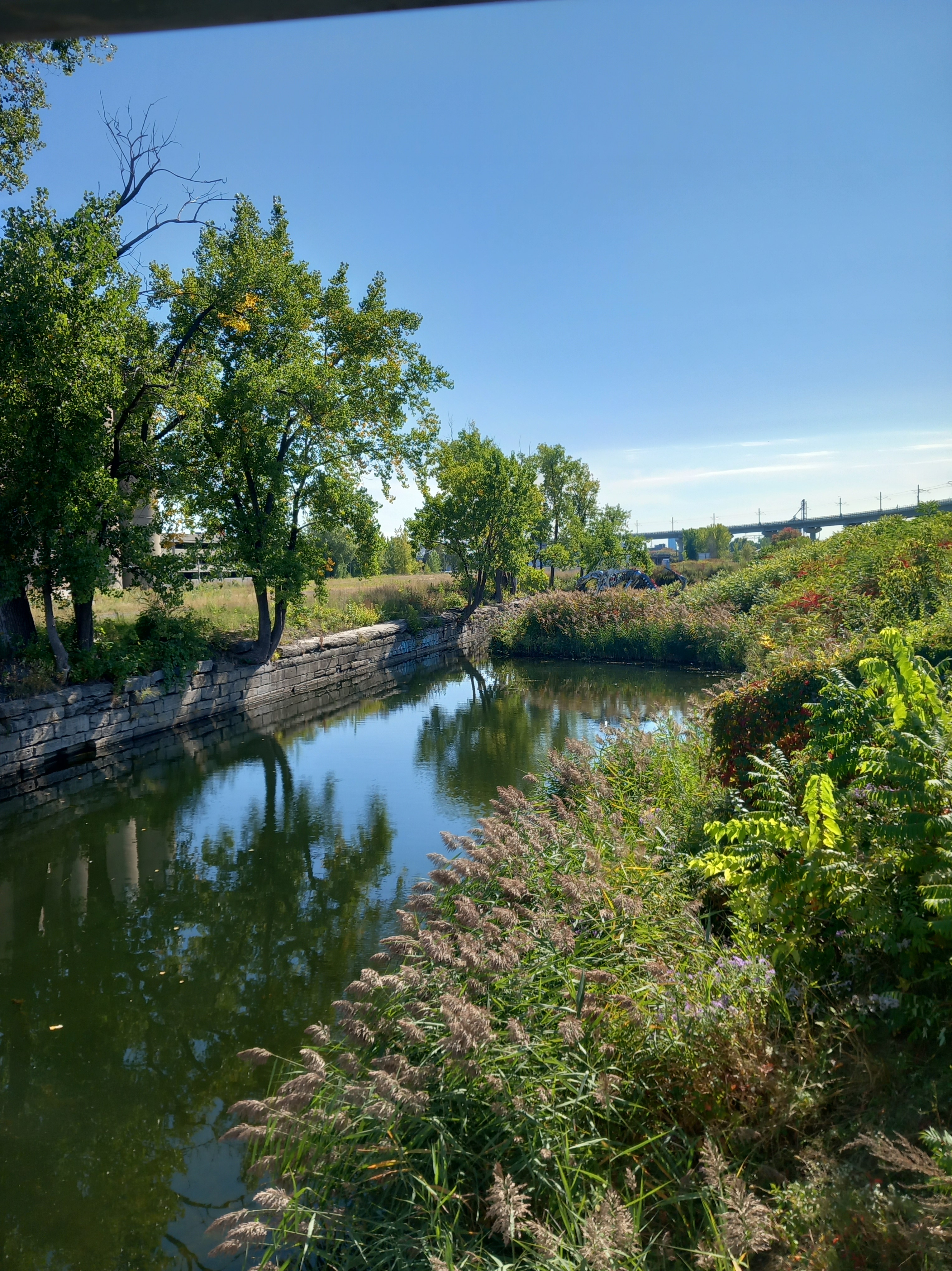 Nous continuons à marcher le long du bassin Bikerdike pour rejoindre l’avenue Bonaventure, longeons la minoterie Five Roses et arrivons au bord du bassin Peel peuplé de canards, de pêcheurs, de cyclistes et de familles venant se promener. Le lieu est très calme, bucolique, on se croirait en pleine campagne si les gratte-ciels ne dominaient pas le site.