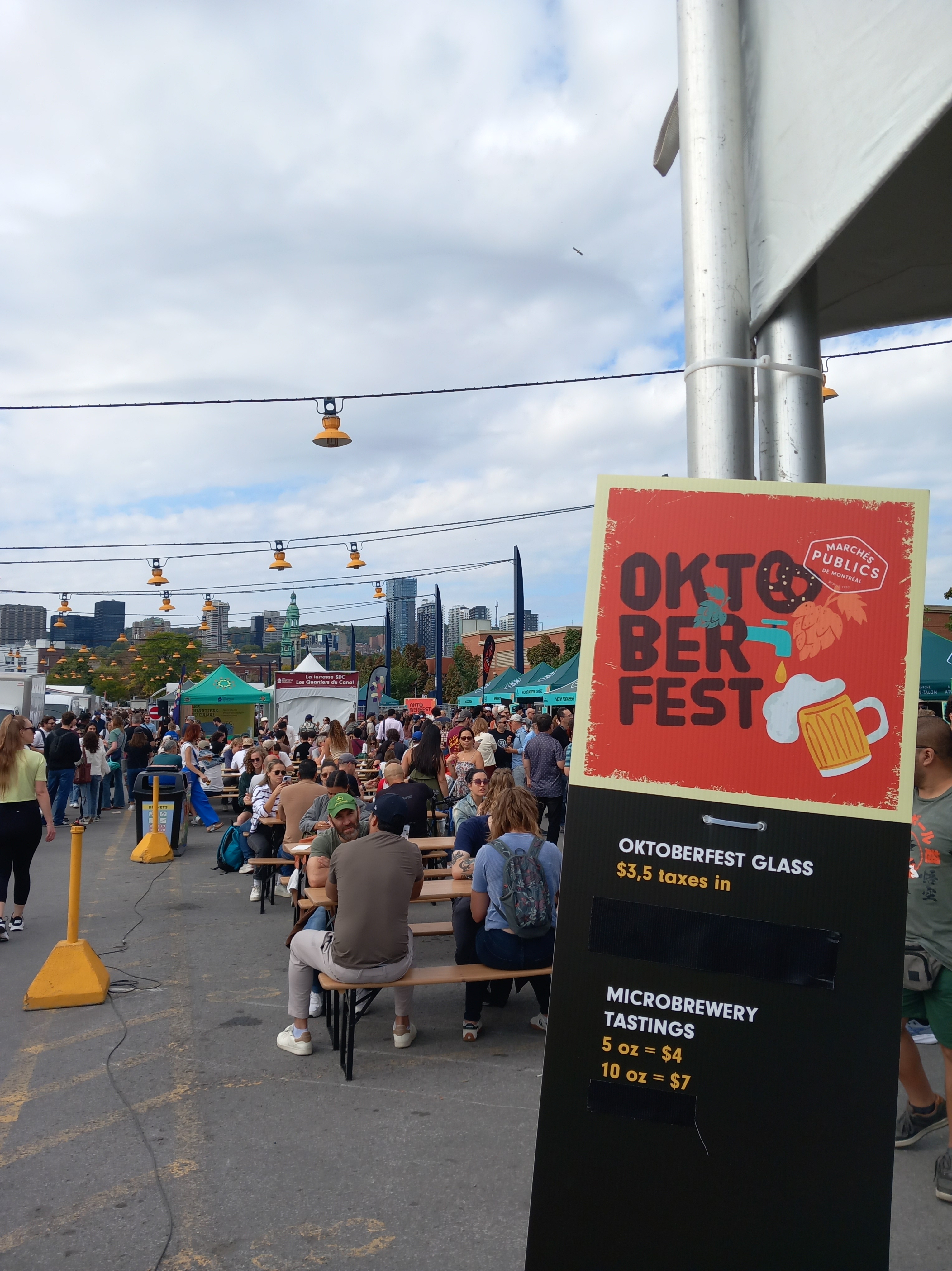 Après une petite pause dans le ruines de l’église Sainte-Anne au coeur du quartier de Wellington, nous reprenons le métro afin de rejoindre le marché Atwater. De style art déco, il est réputé pour être un des plus beaux édifices de Montréal, et vu que nous adorons les marchés, il est hors de question de ne pas le visiter ! Mais alors, quelle était la probabilité pour que pile le jour de notre venue se tienne une Oktoberfest sur son parvis ?