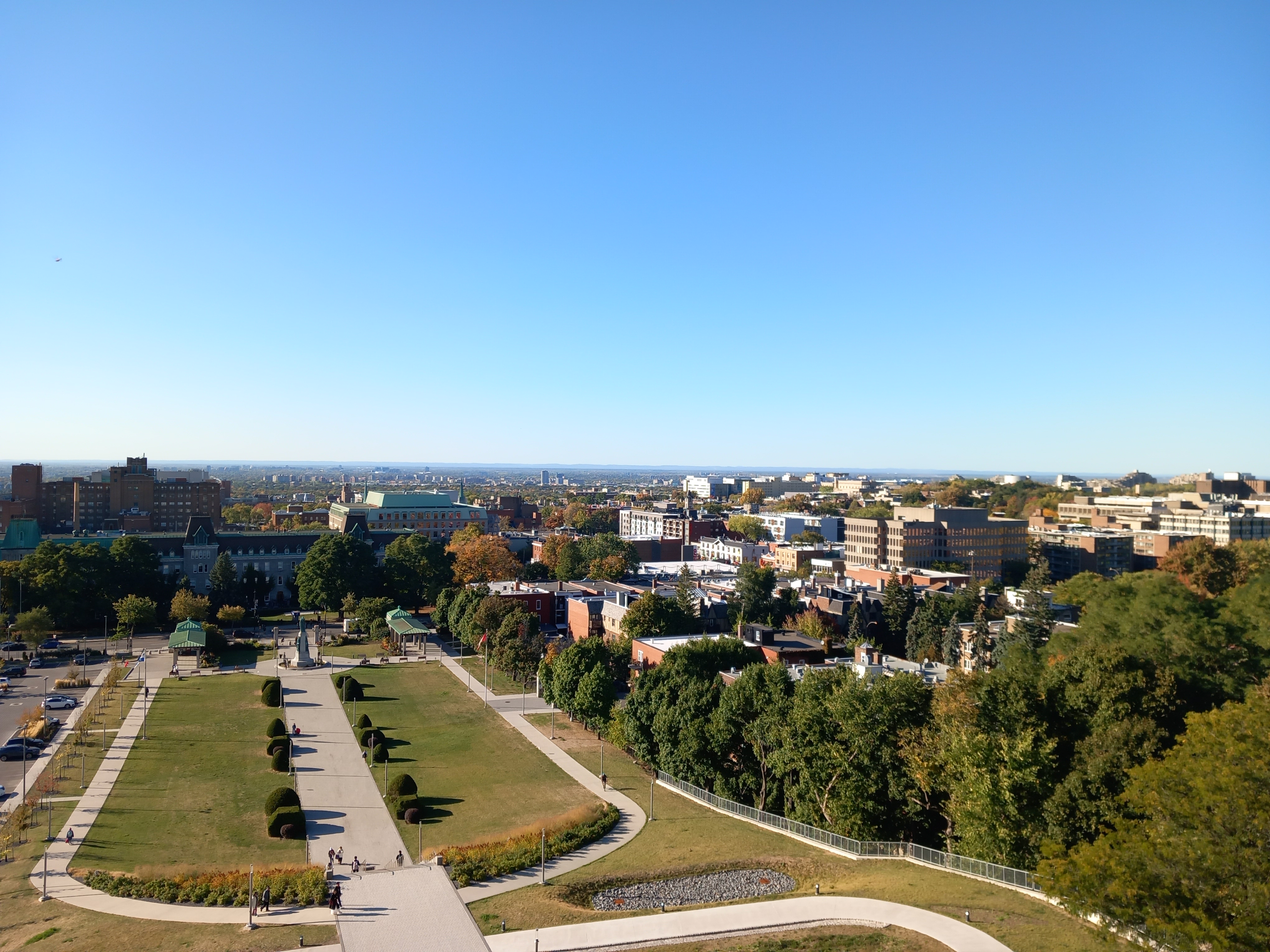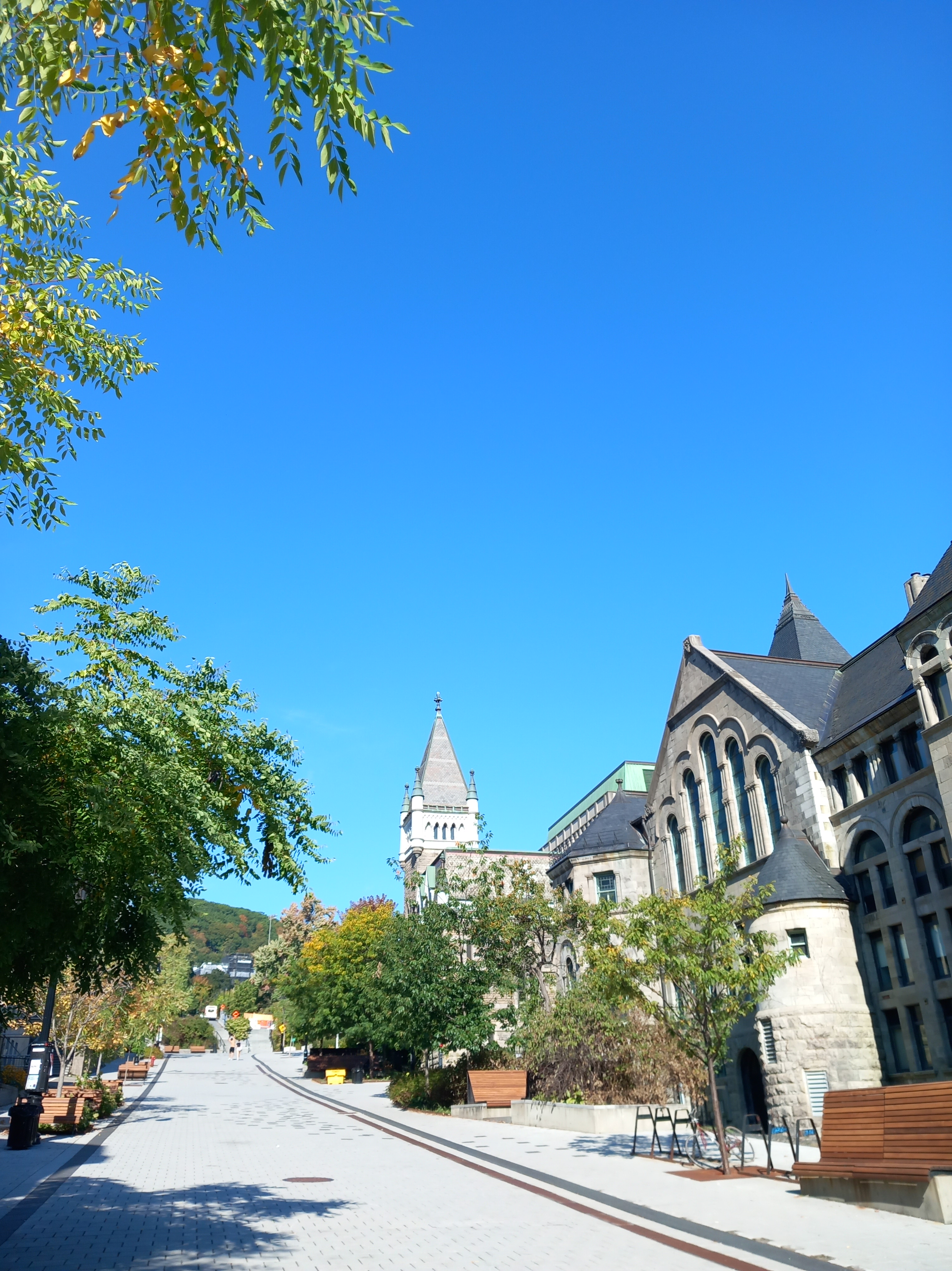Pour cette troisième journée, nous décidons de d’abord nous faire du mal. Comment ? En nous rendant au Mont Royal par le campus de l’Université Mc Gill, qui nous fait totalement regretter nos études supérieures. En bref, on se croit dans un film, tout est beau, grand, avec des tourelles, des parcs, des terrains de sport, c’est légèrement différent des environnements préfabriqués que nous avons pu côtoyer !