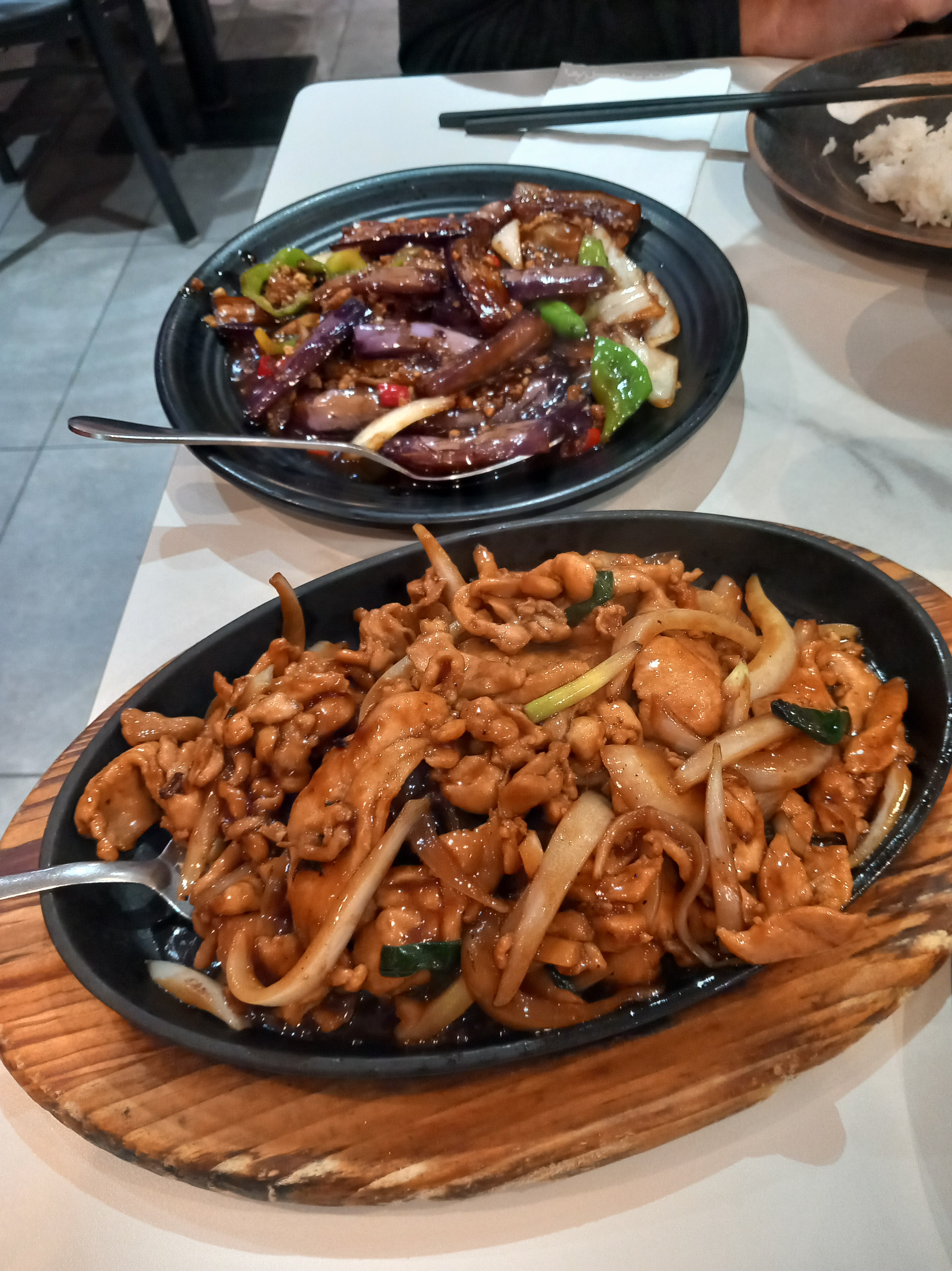 On descend donc les marches du restaurant « Chez Chili » pour arriver dans une salle en sous-sol en réalité pleine à craquer de clients ! Et il faut le dire : nous avons excellemment bien mangé, avec un service impeccable. Les aubergines sauce haricot noir étaient à tomber ! Et le tout avec un rapport qualité / prix incroyable également.